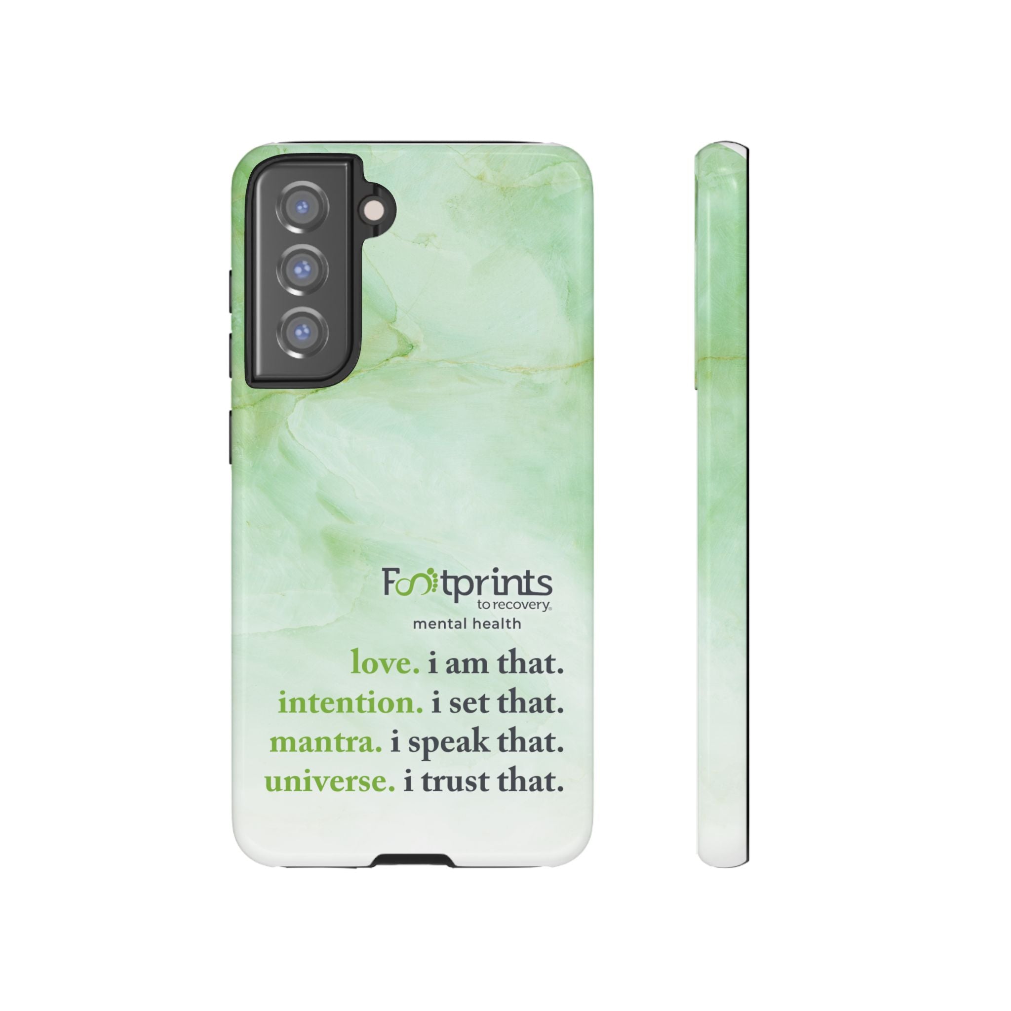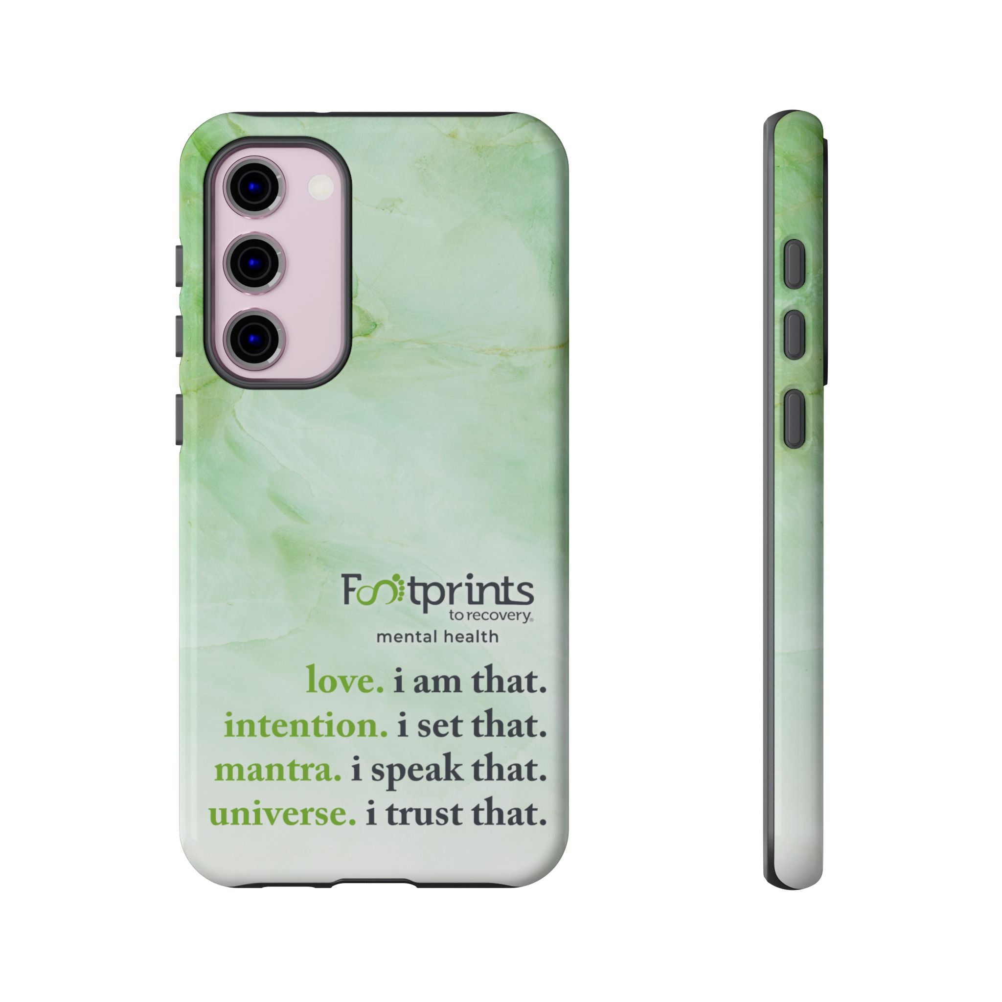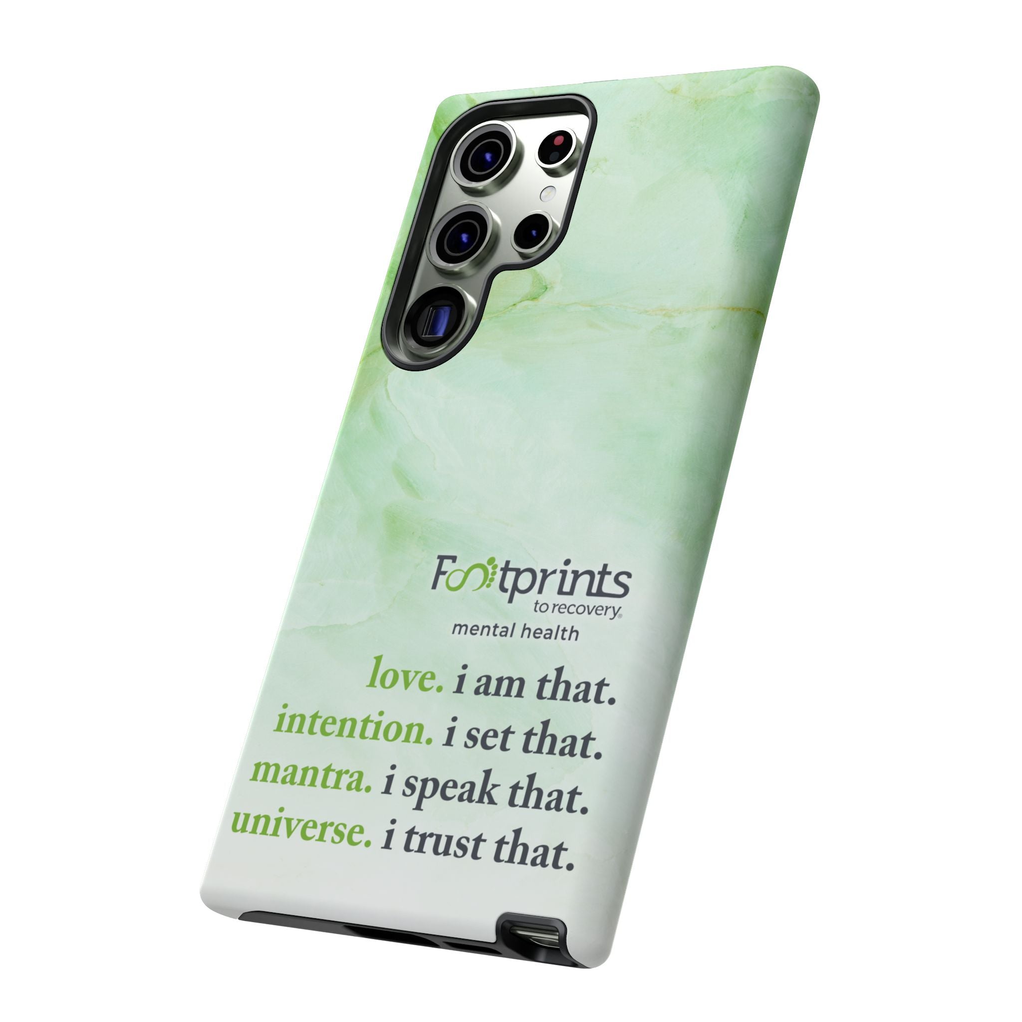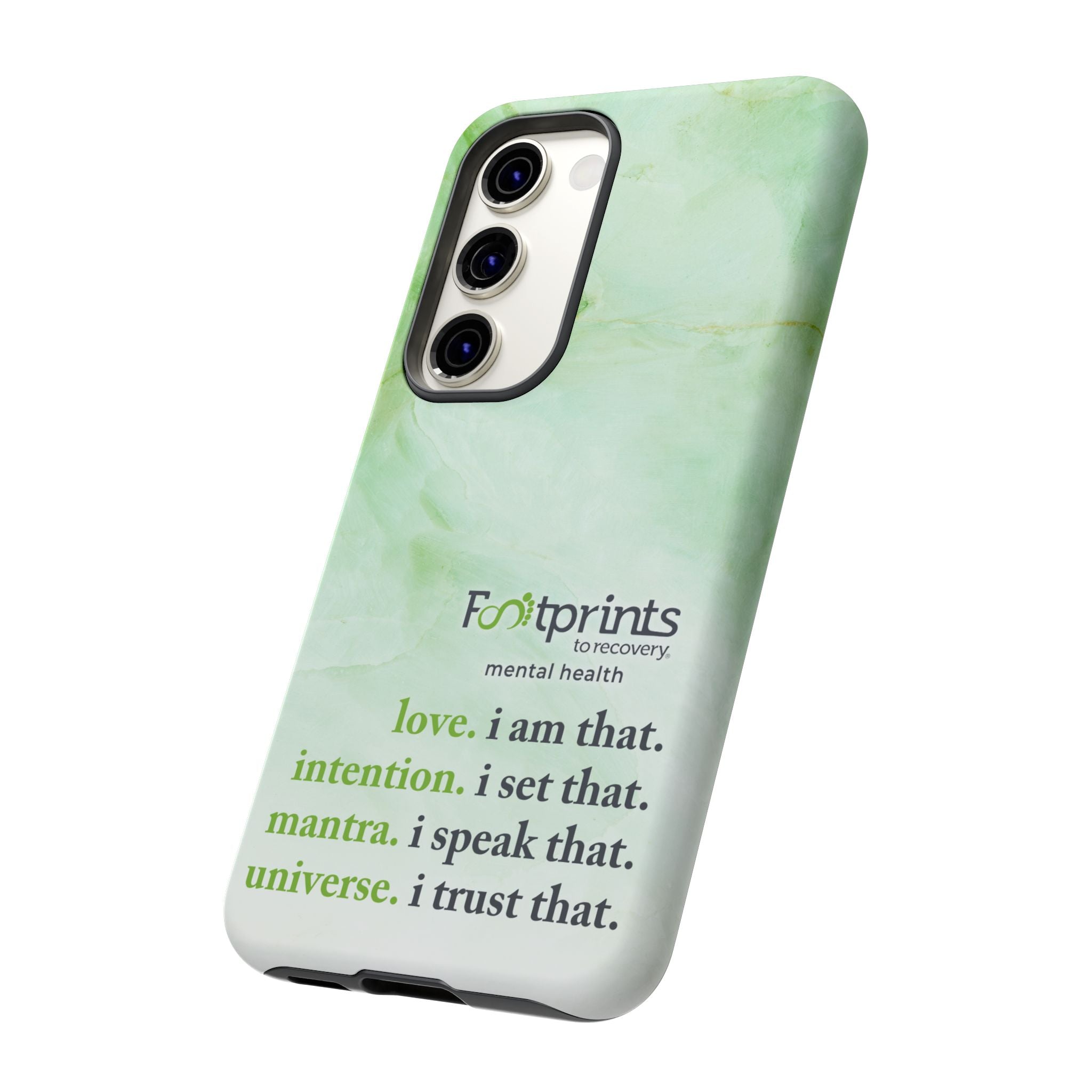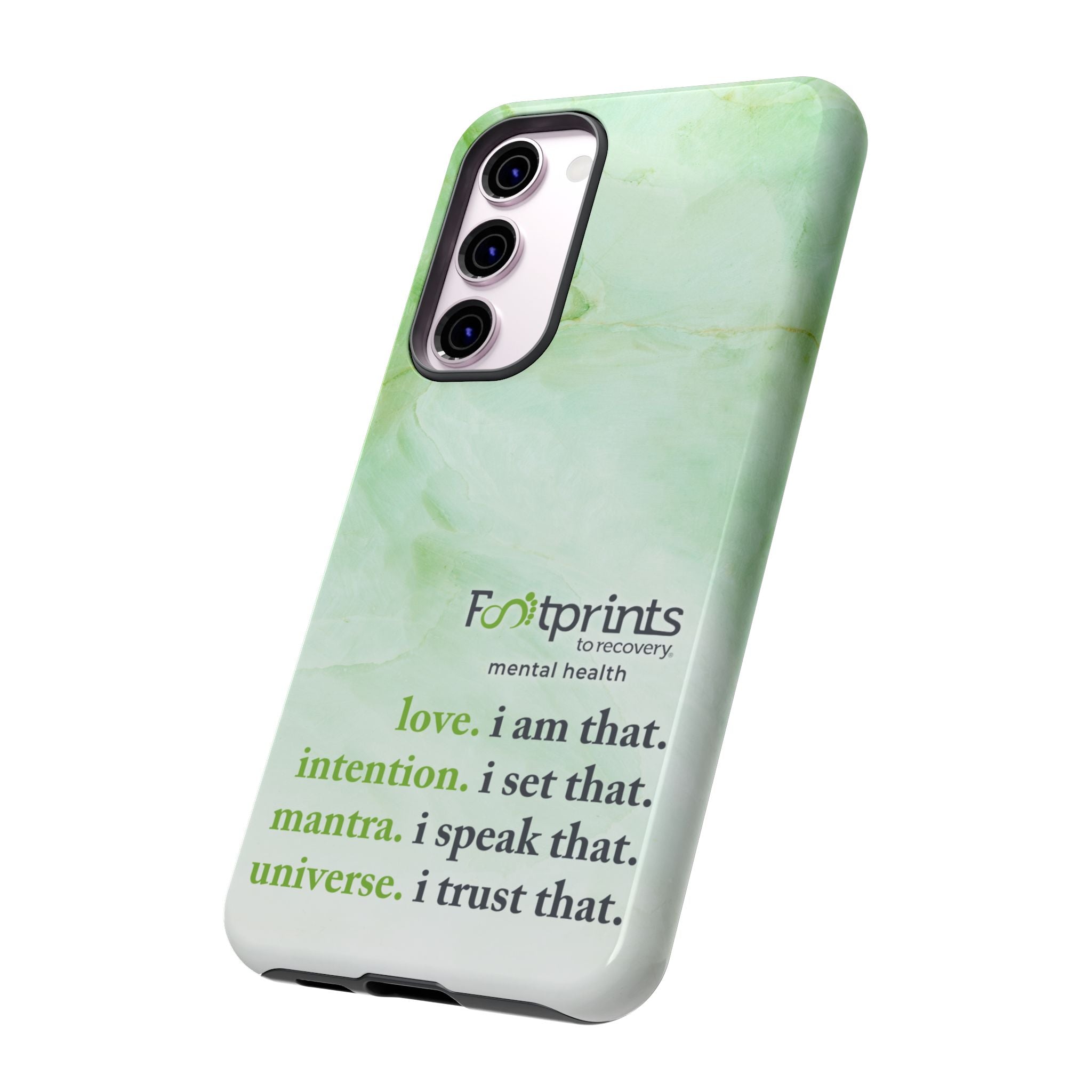Footprints Mental Health Mantra MagSafe Android Tough Case - the ultimate protection for your phone. Made from high-quality materials, it's durable and stylish and offers easy access to all ports and buttons. With its shock-absorbing technology and anti-slip grip, this case is perfect for anyone who wants to keep their phone safe and secure.