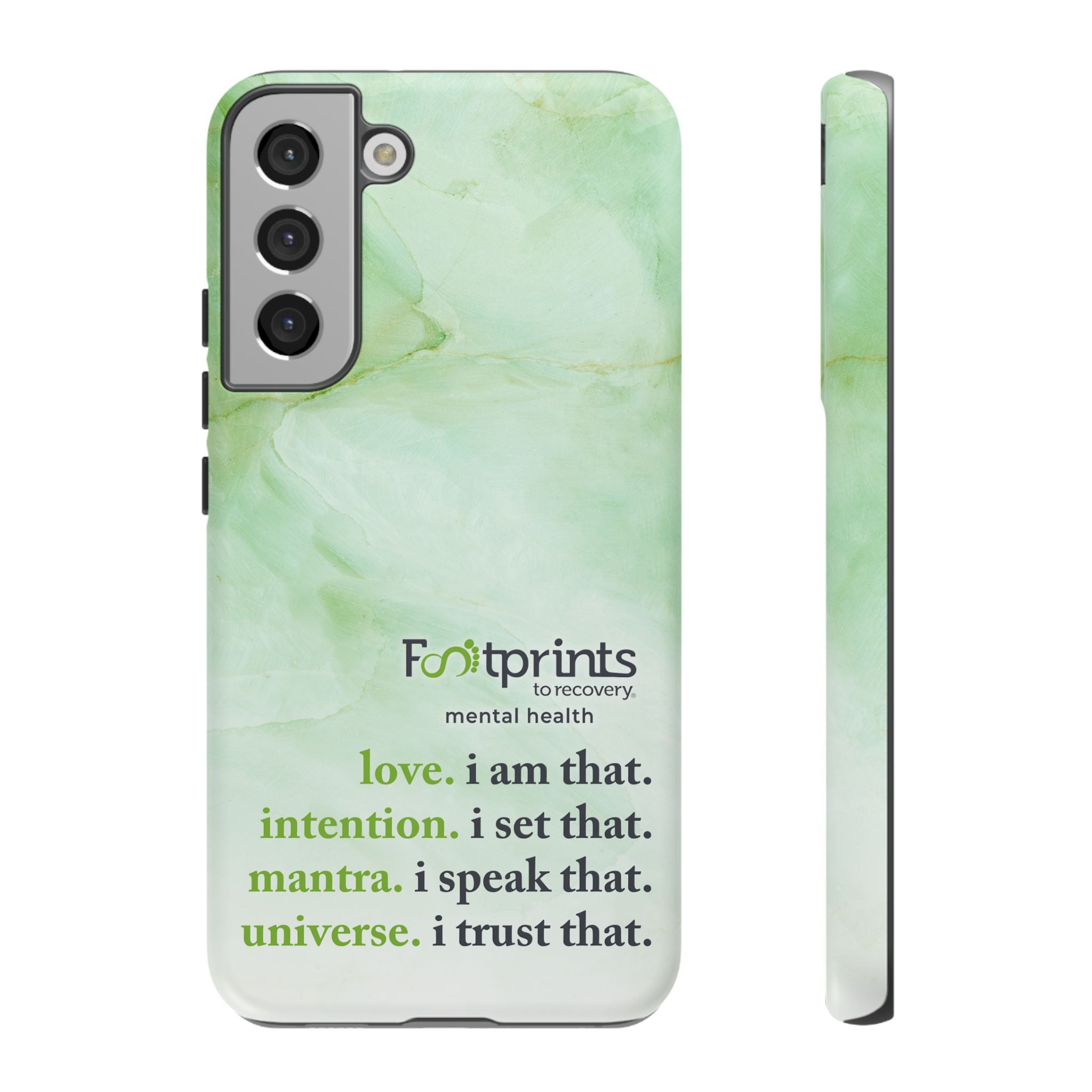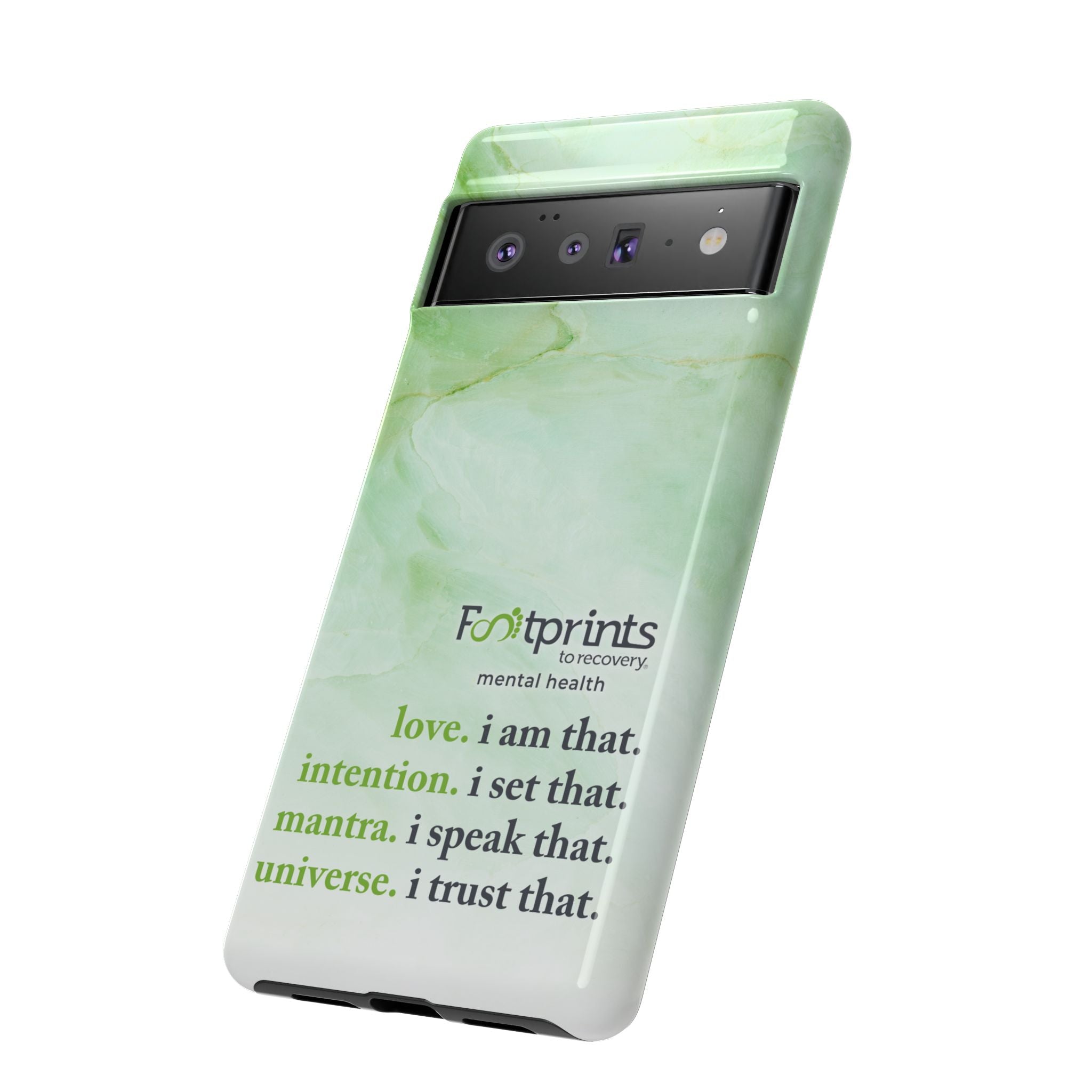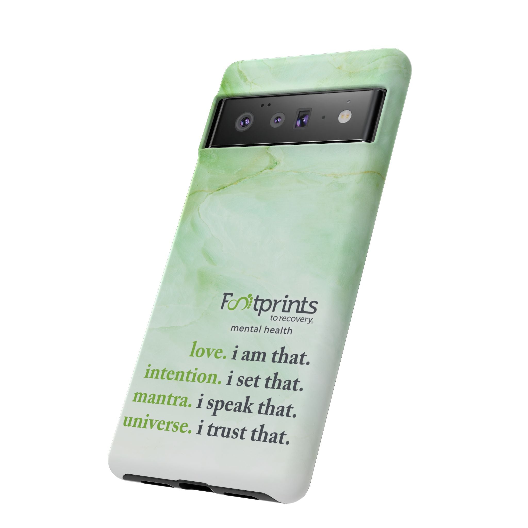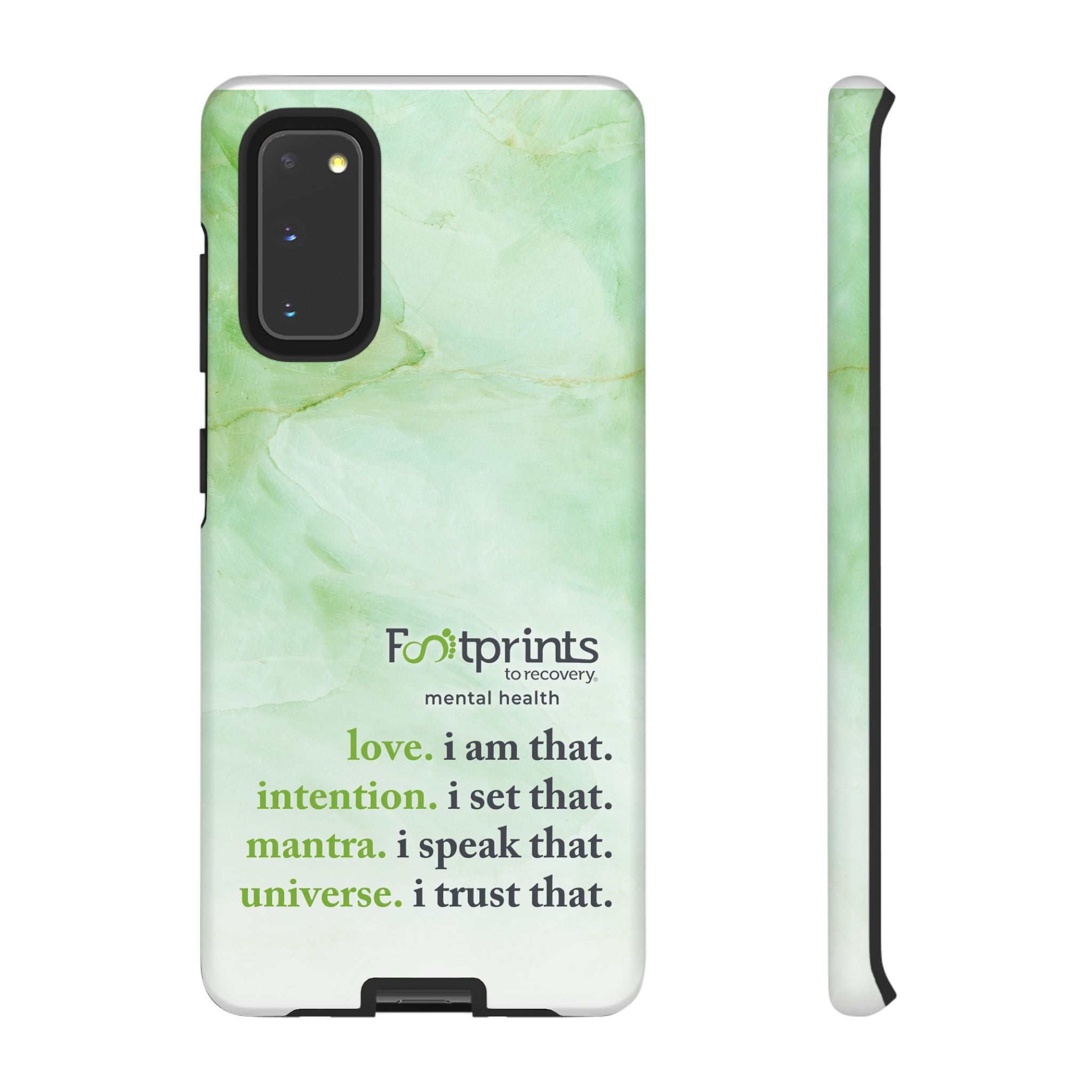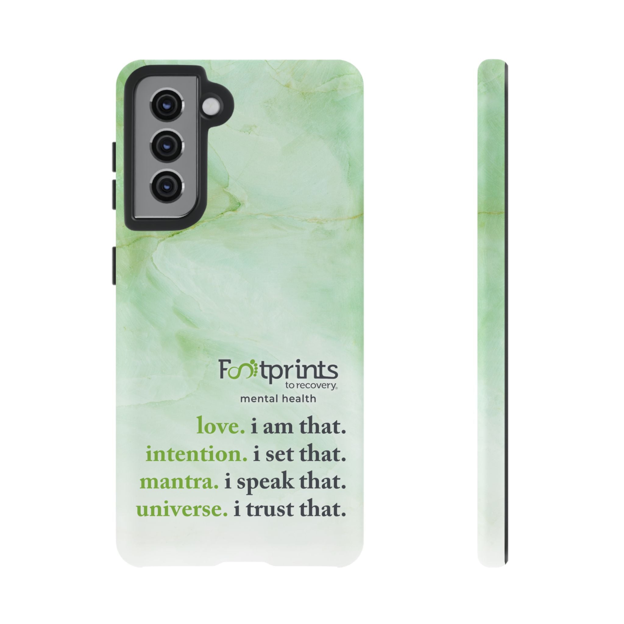 Footprints Mental Health Mantra MagSafe Android Tough Case - the ultimate protection for your phone. Made from high-quality materials, it's durable and stylish and offers easy access to all ports and buttons. With its shock-absorbing technology and anti-slip grip, this case is perfect for anyone who wants to keep their phone safe and secure.
