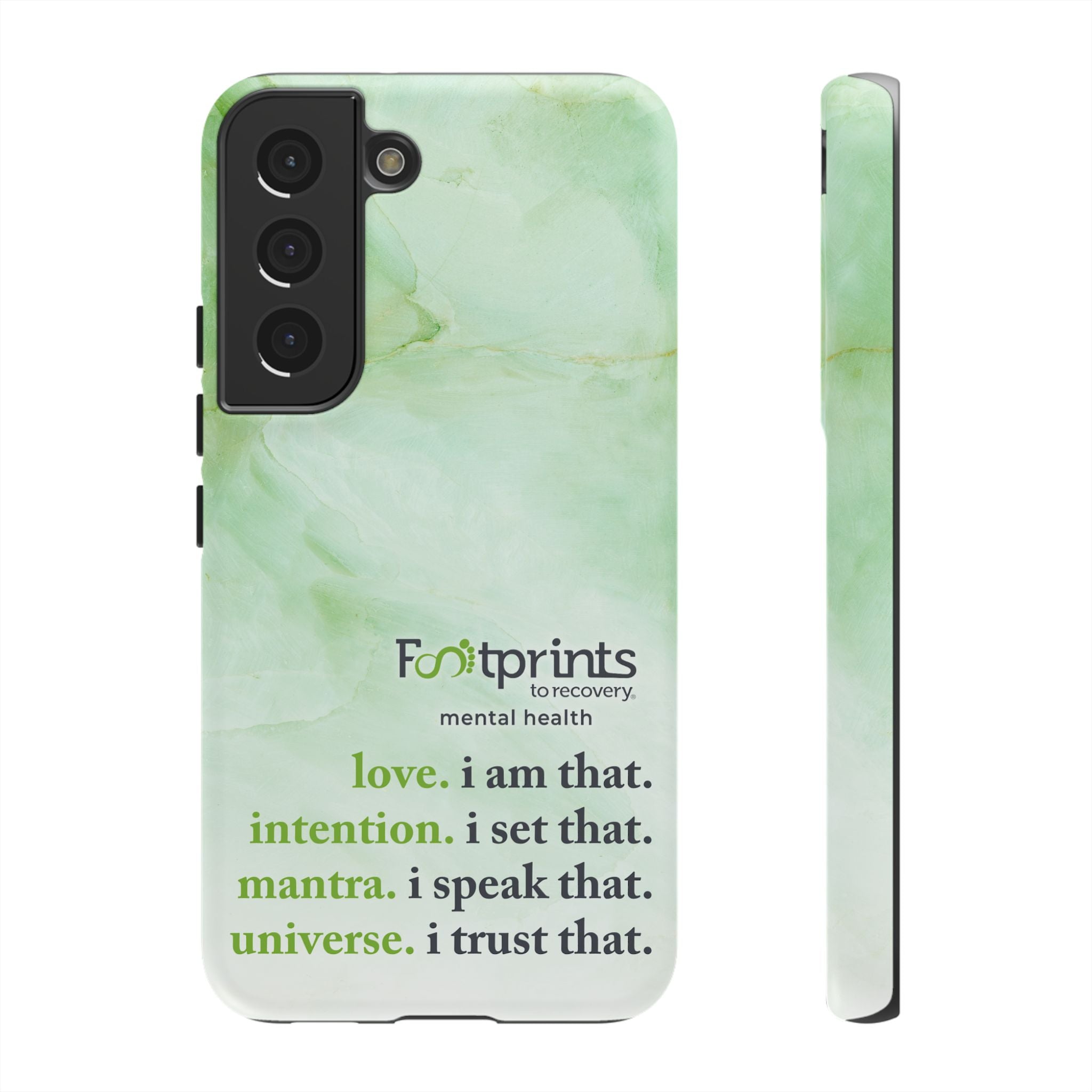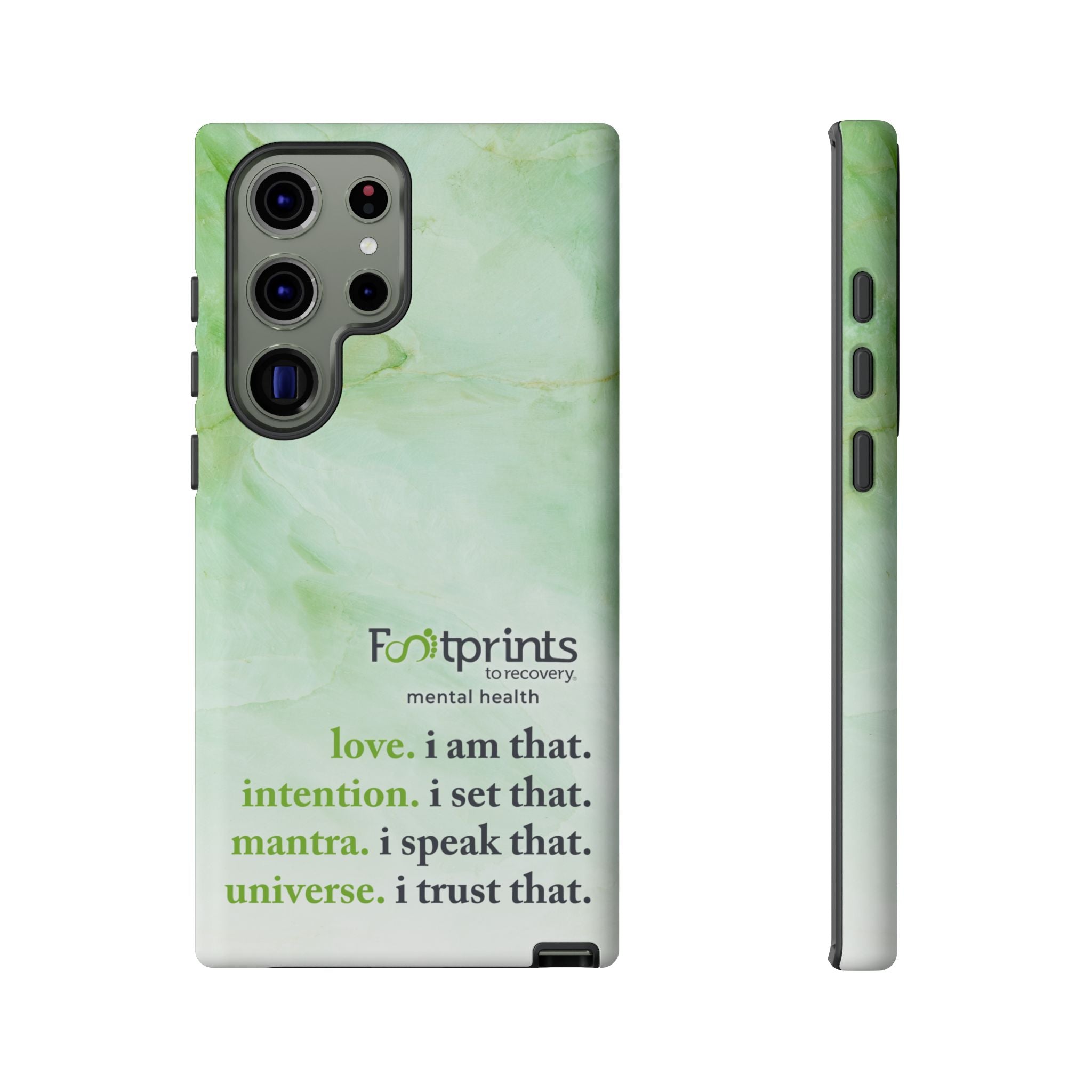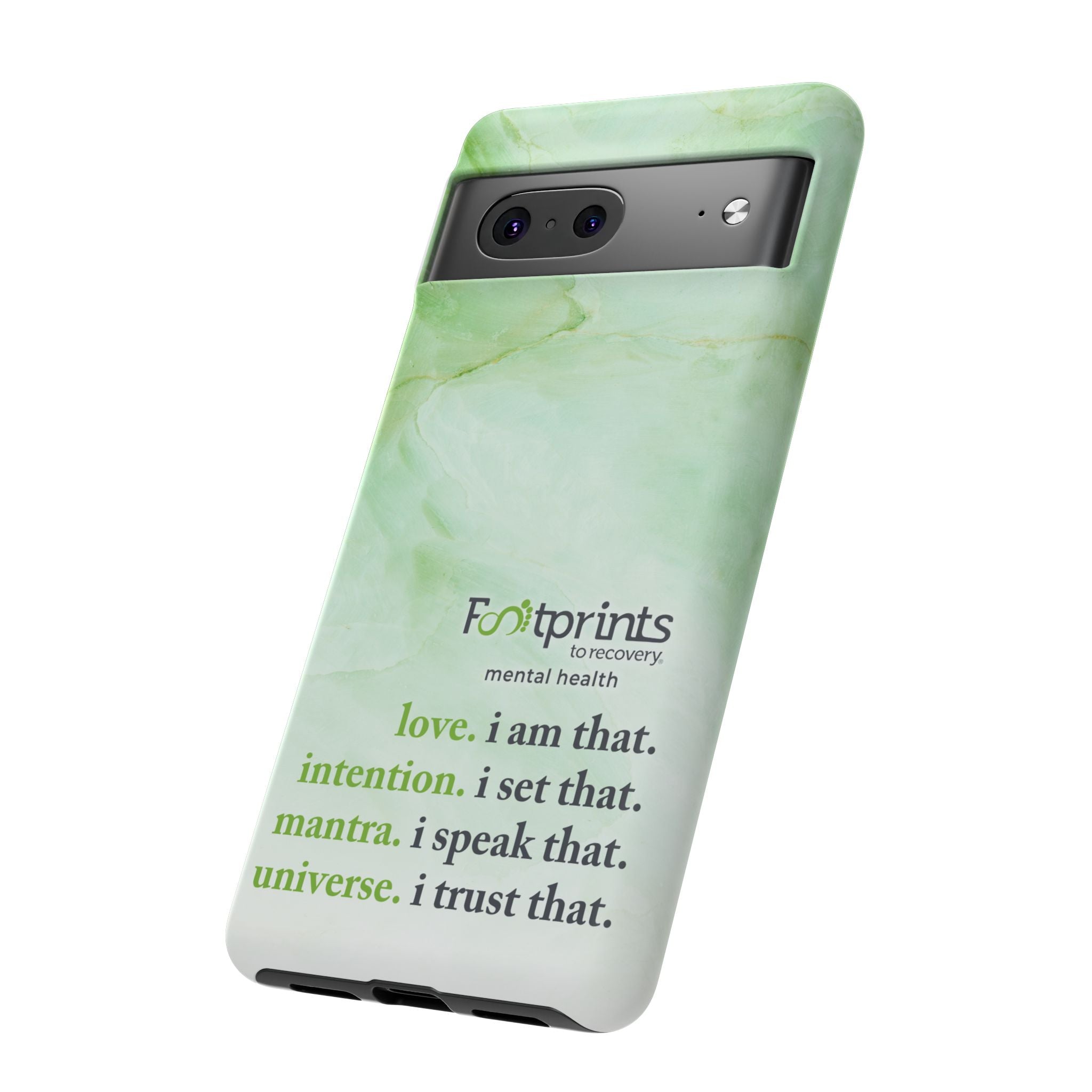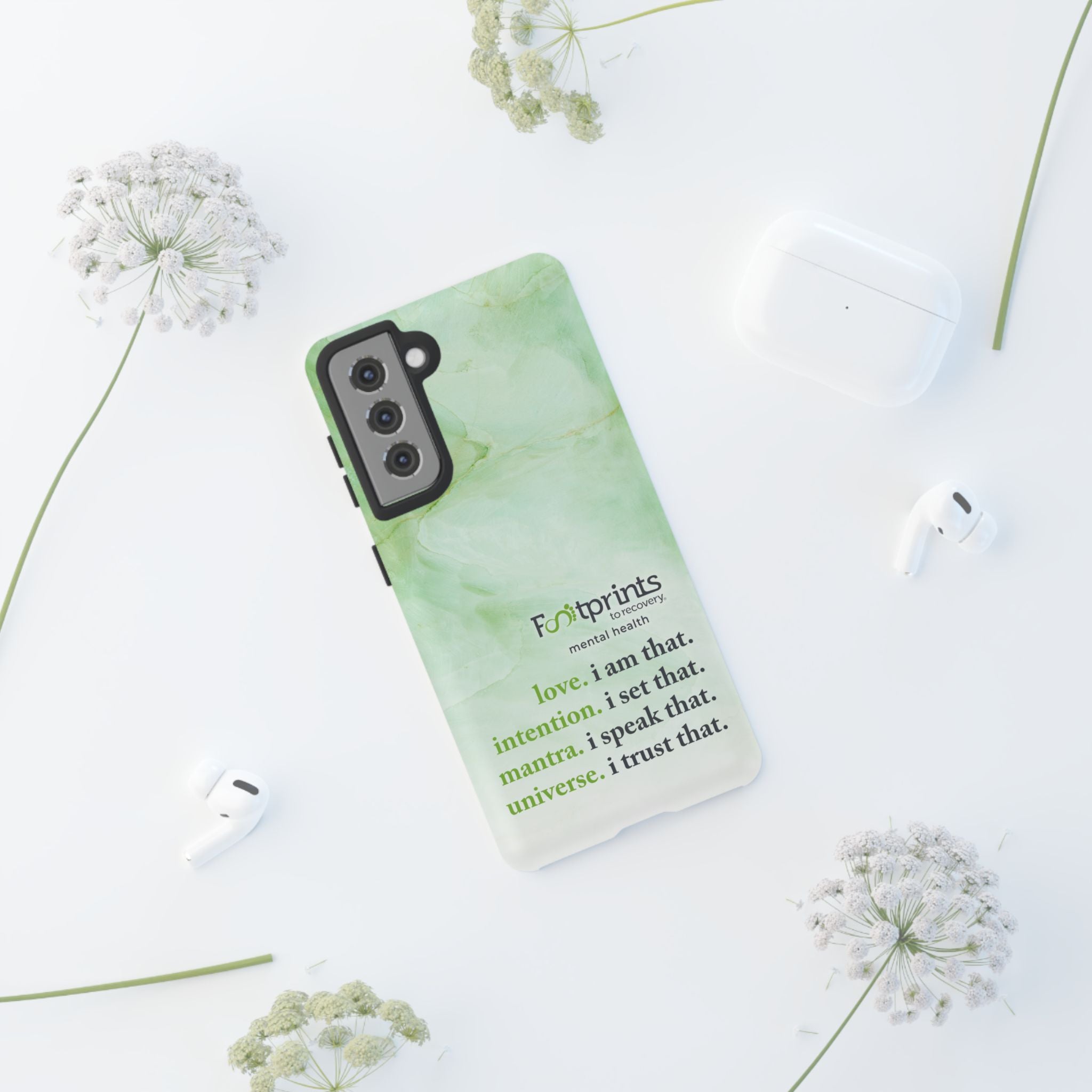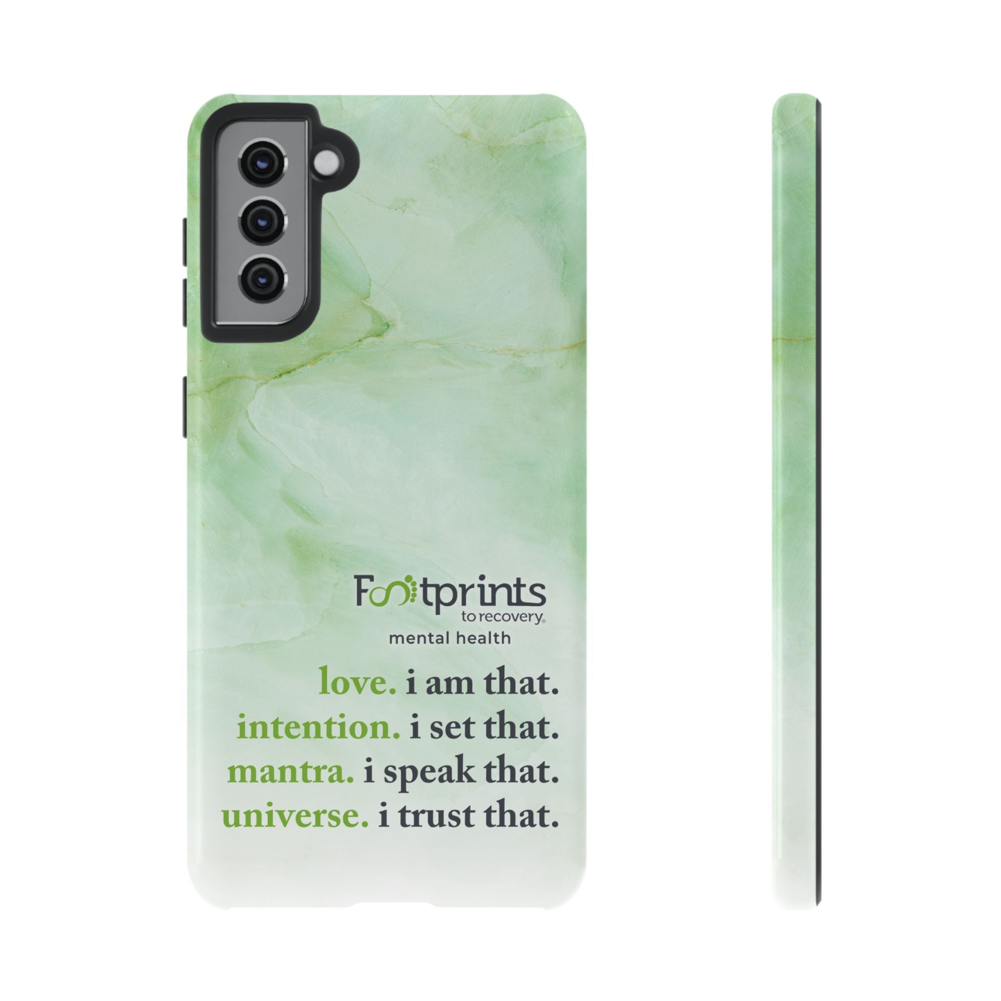 Footprints Mental Health Mantra MagSafe Android Tough Case - the ultimate protection for your phone. Made from high-quality materials, it's durable and stylish and offers easy access to all ports and buttons. With its shock-absorbing technology and anti-slip grip, this case is perfect for anyone who wants to keep their phone safe and secure.