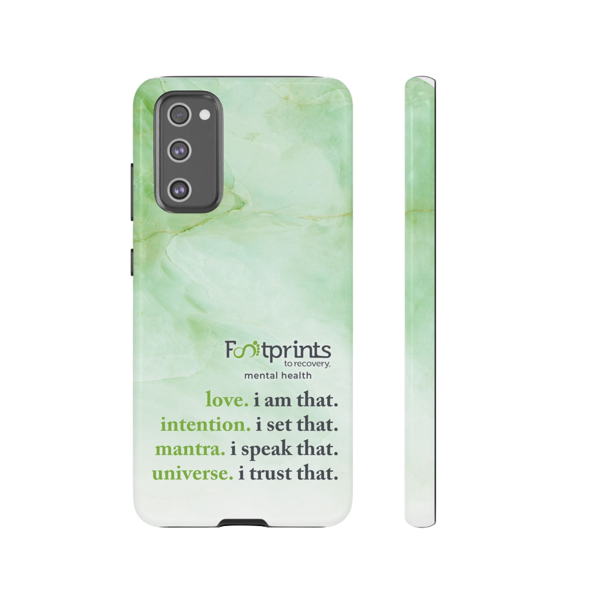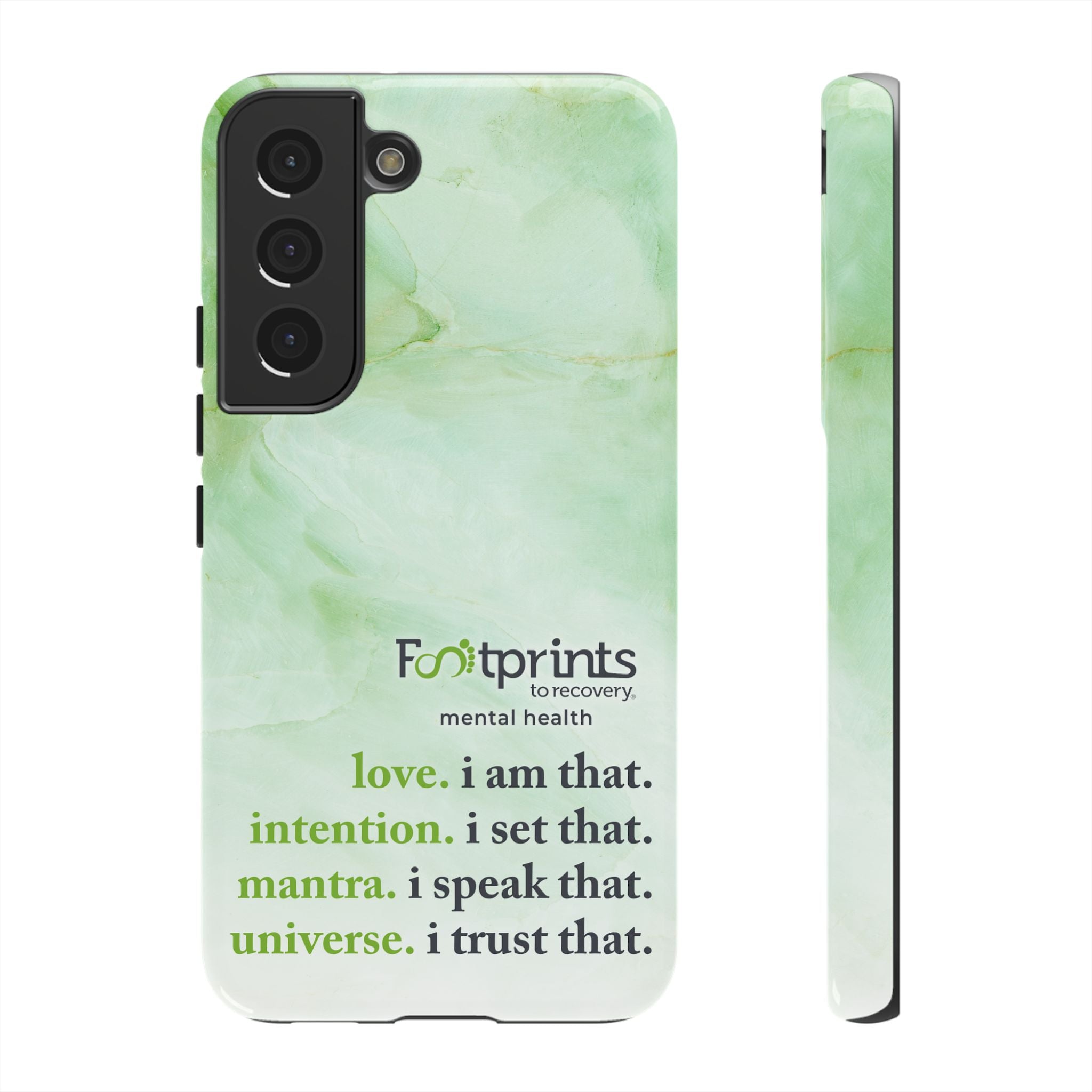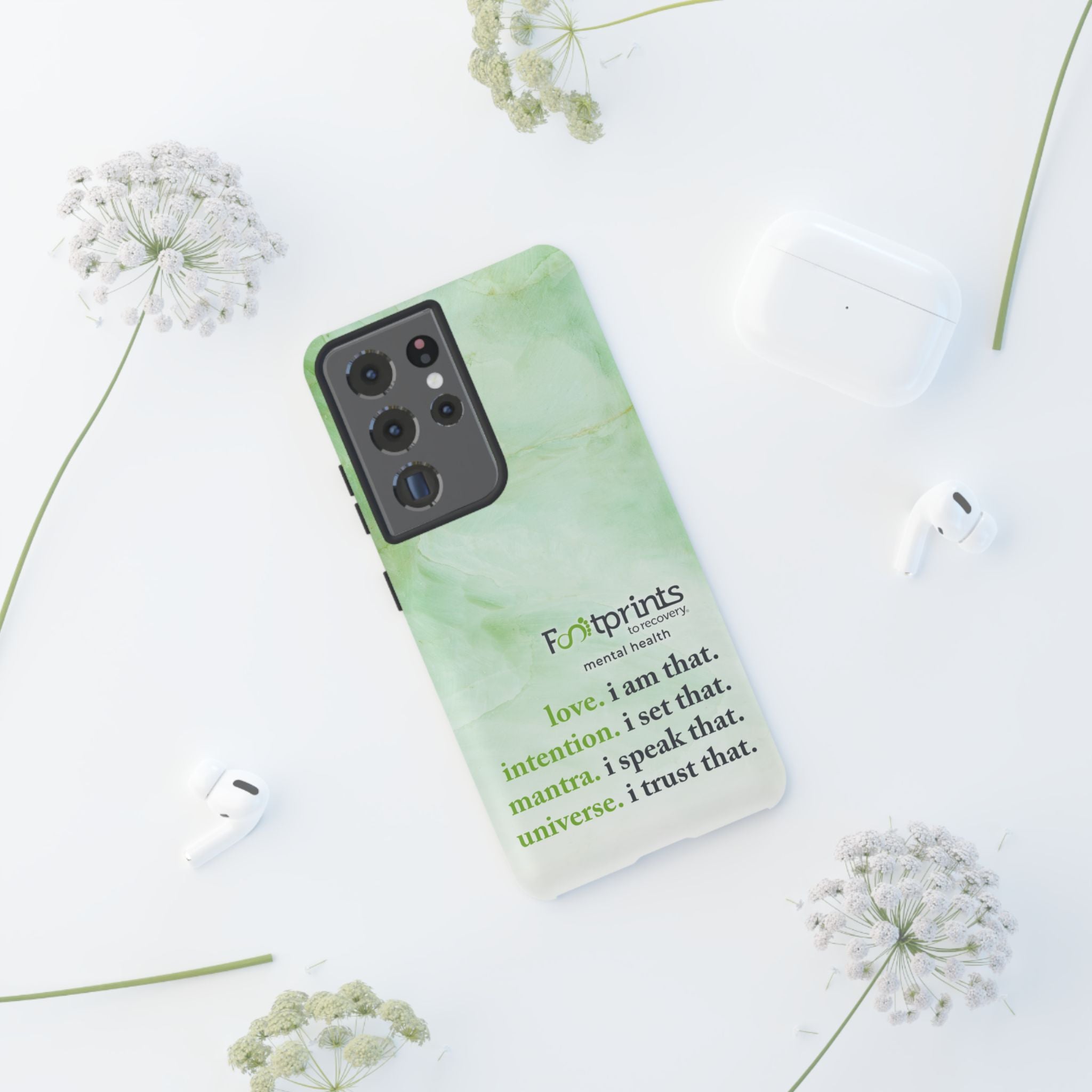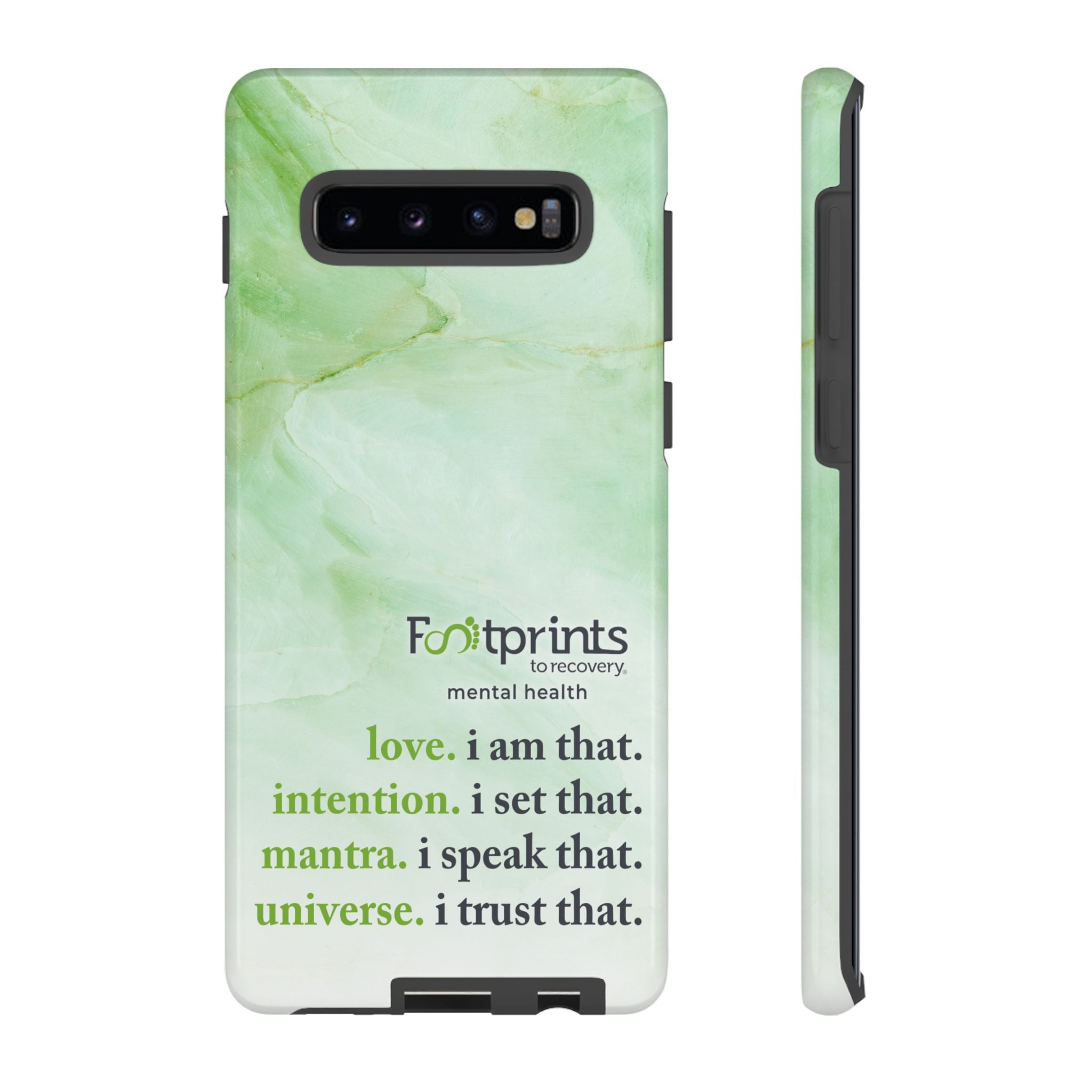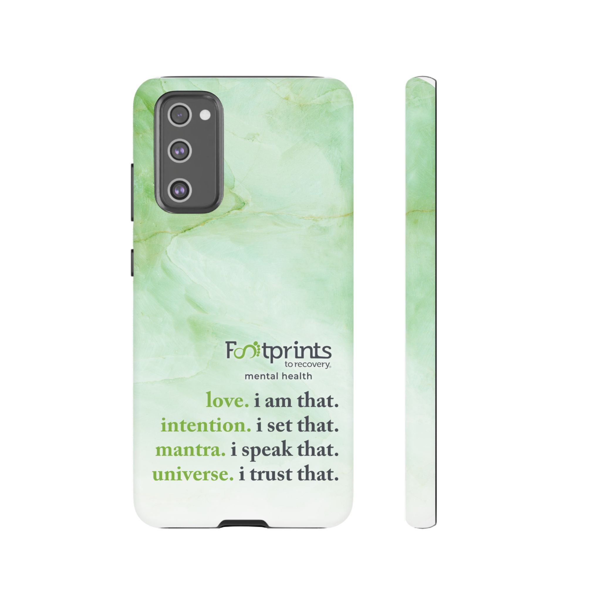 Footprints Mental Health Mantra MagSafe Android Tough Case - the ultimate protection for your phone. Made from high-quality materials, it's durable and stylish and offers easy access to all ports and buttons. With its shock-absorbing technology and anti-slip grip, this case is perfect for anyone who wants to keep their phone safe and secure.