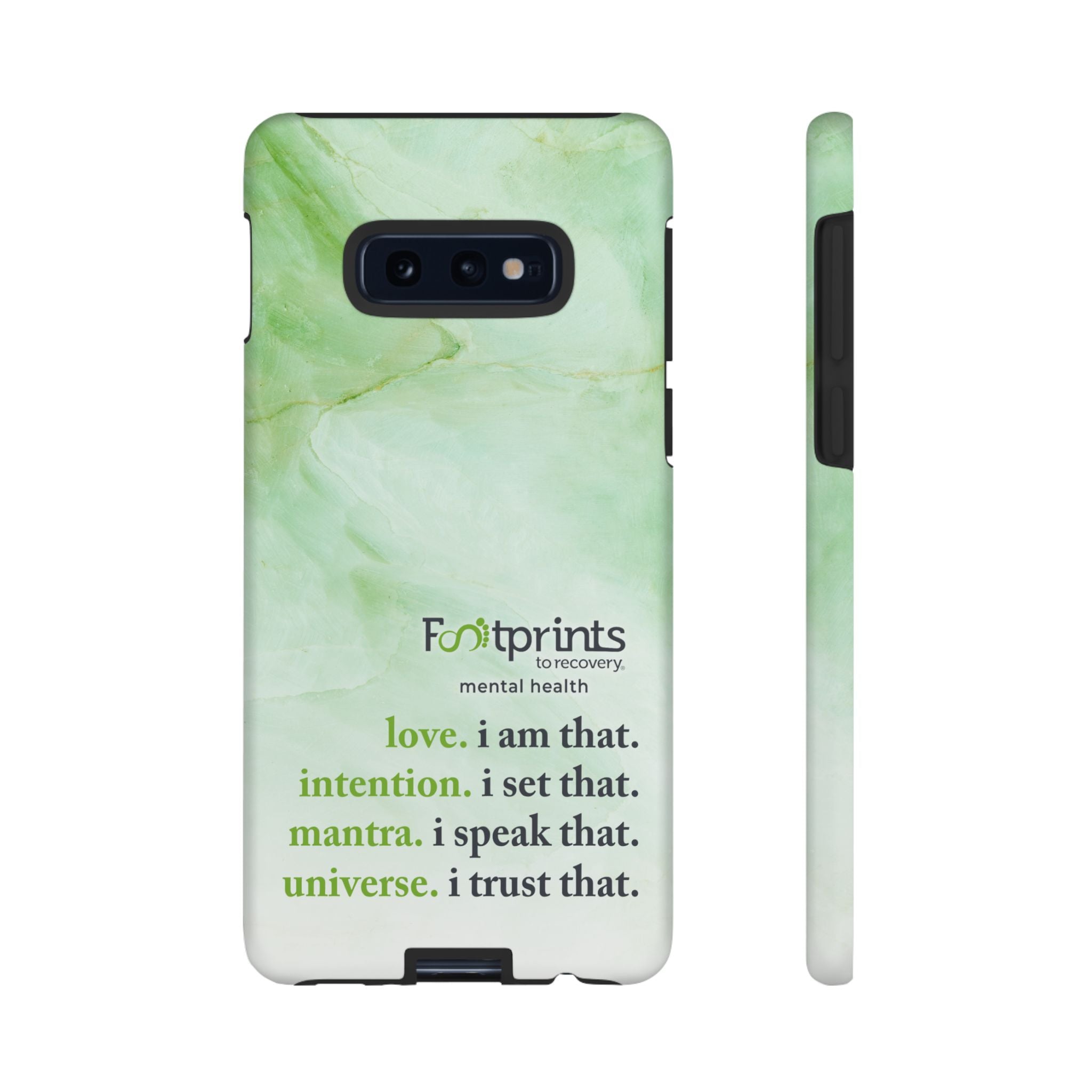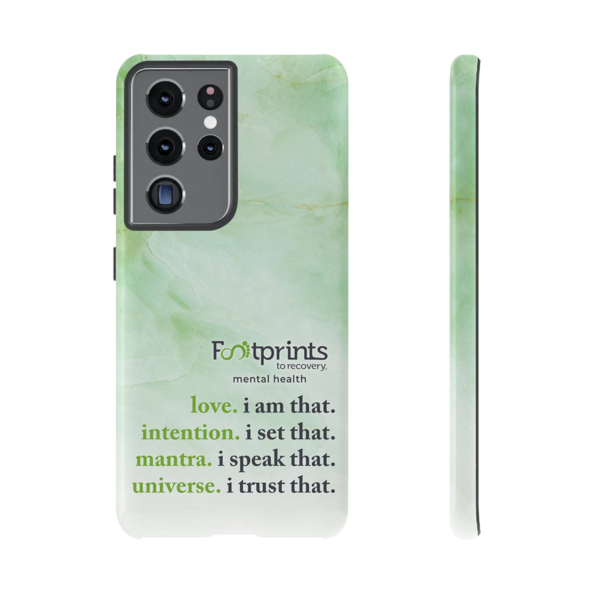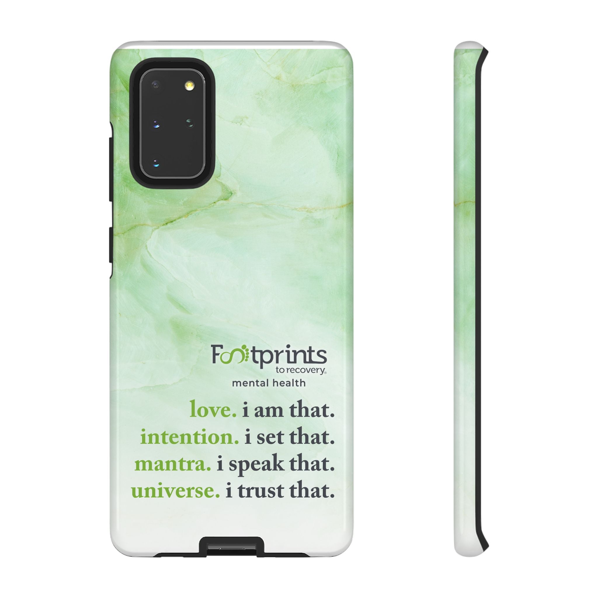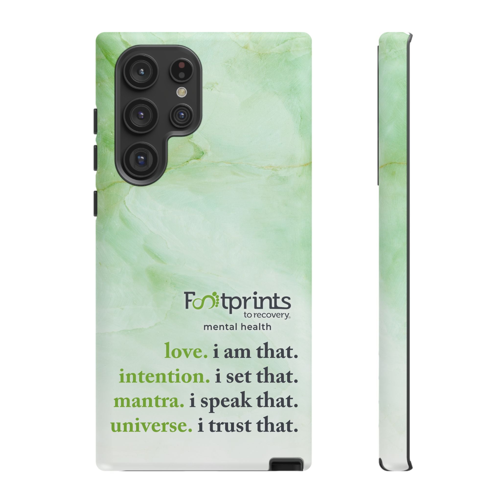 Footprints Mental Health Mantra MagSafe Android Tough Case - the ultimate protection for your phone. Made from high-quality materials, it's durable and stylish and offers easy access to all ports and buttons. With its shock-absorbing technology and anti-slip grip, this case is perfect for anyone who wants to keep their phone safe and secure.