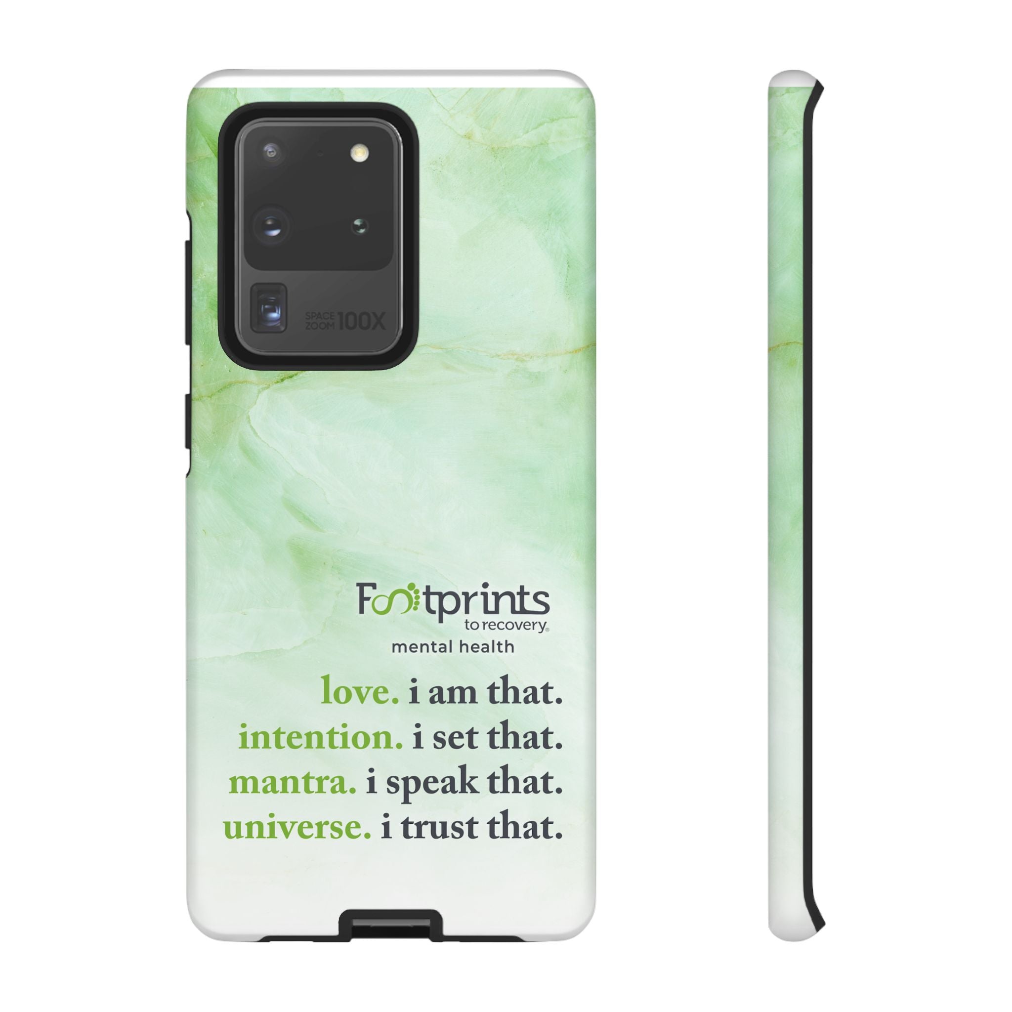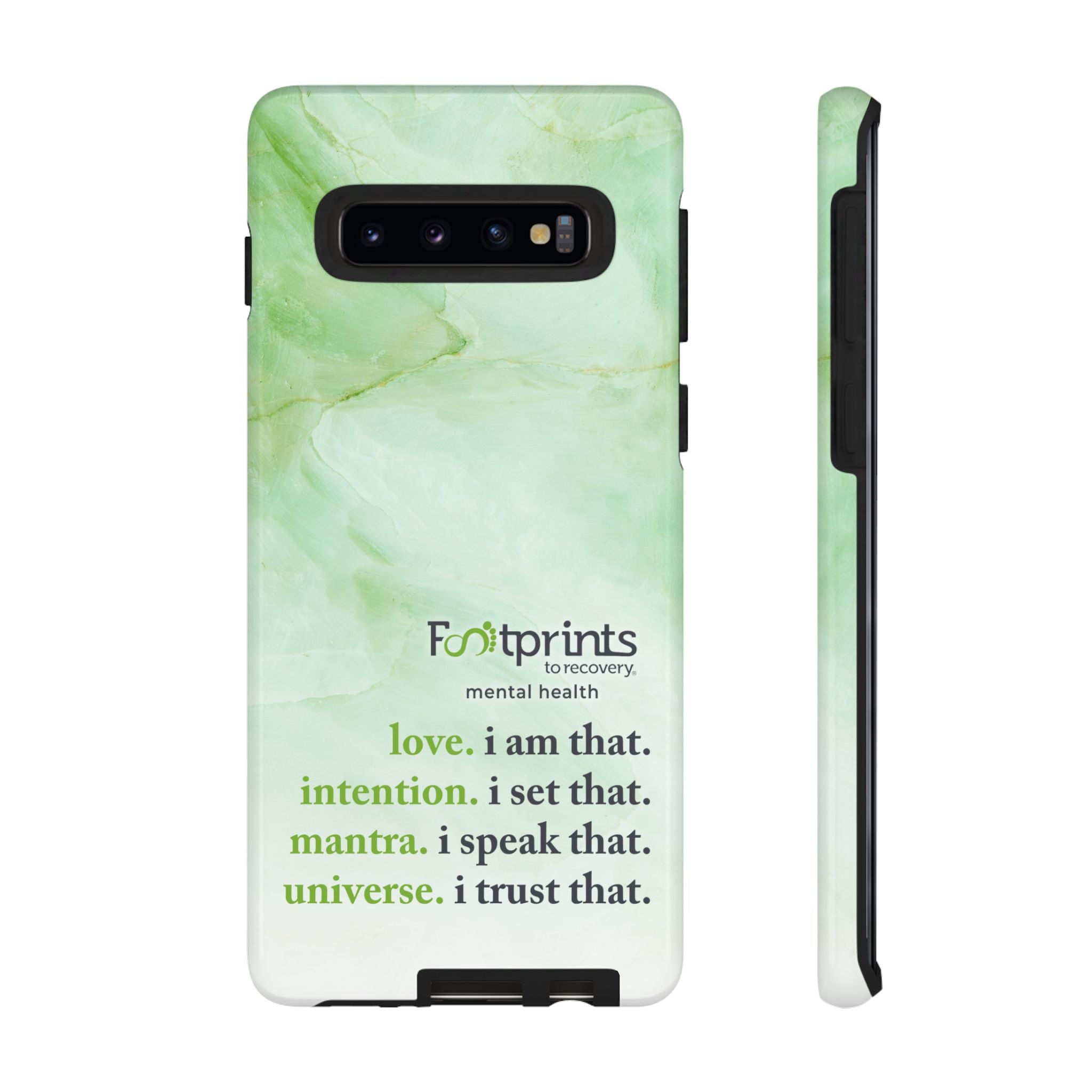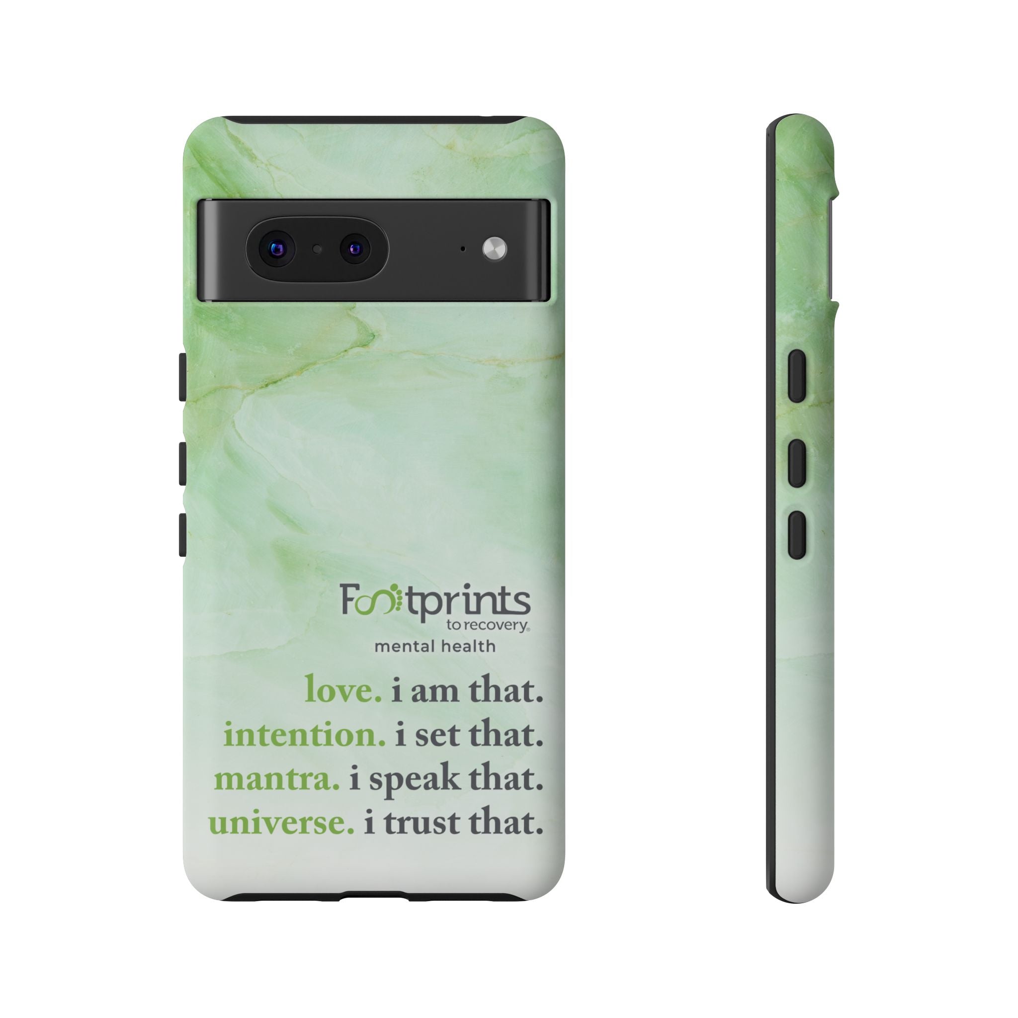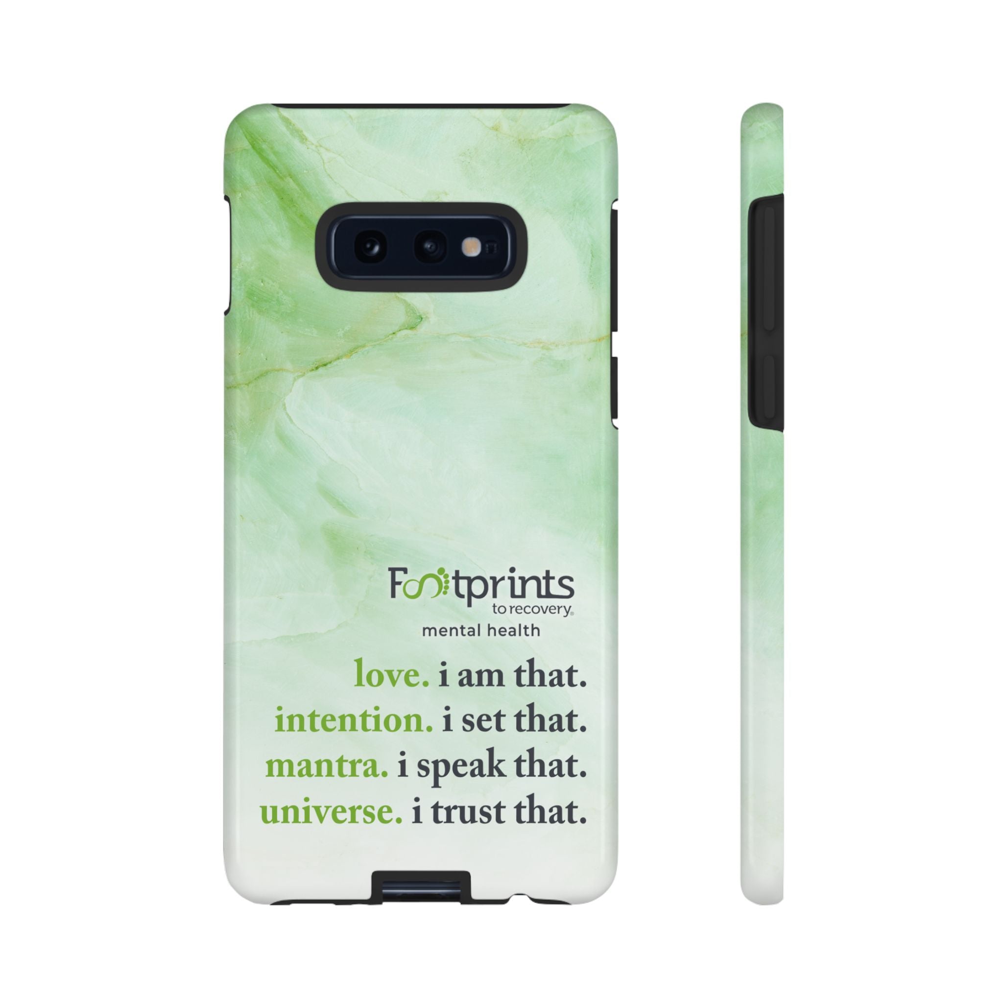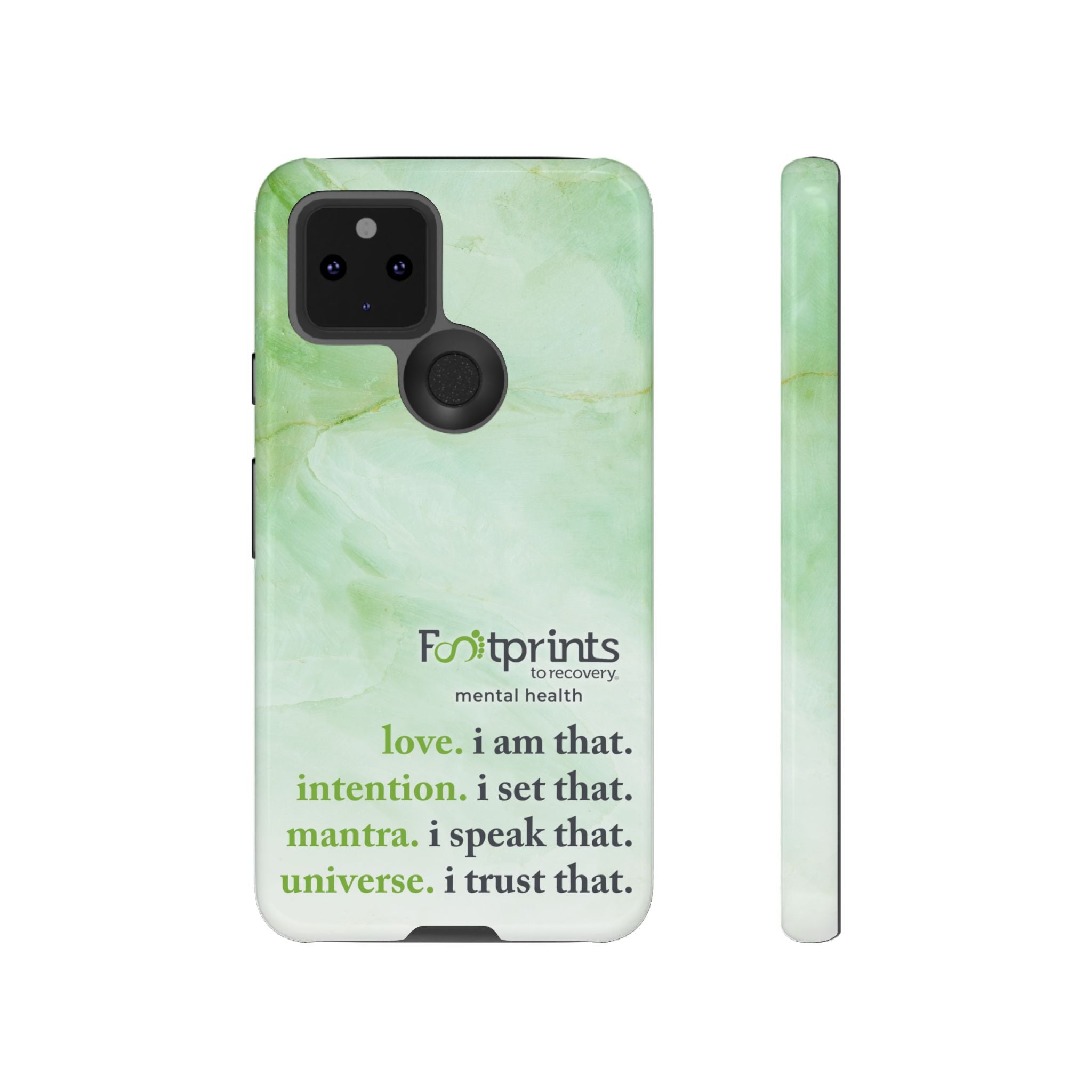 Footprints Mental Health Mantra MagSafe Android Tough Case - the ultimate protection for your phone. Made from high-quality materials, it's durable and stylish and offers easy access to all ports and buttons. With its shock-absorbing technology and anti-slip grip, this case is perfect for anyone who wants to keep their phone safe and secure.