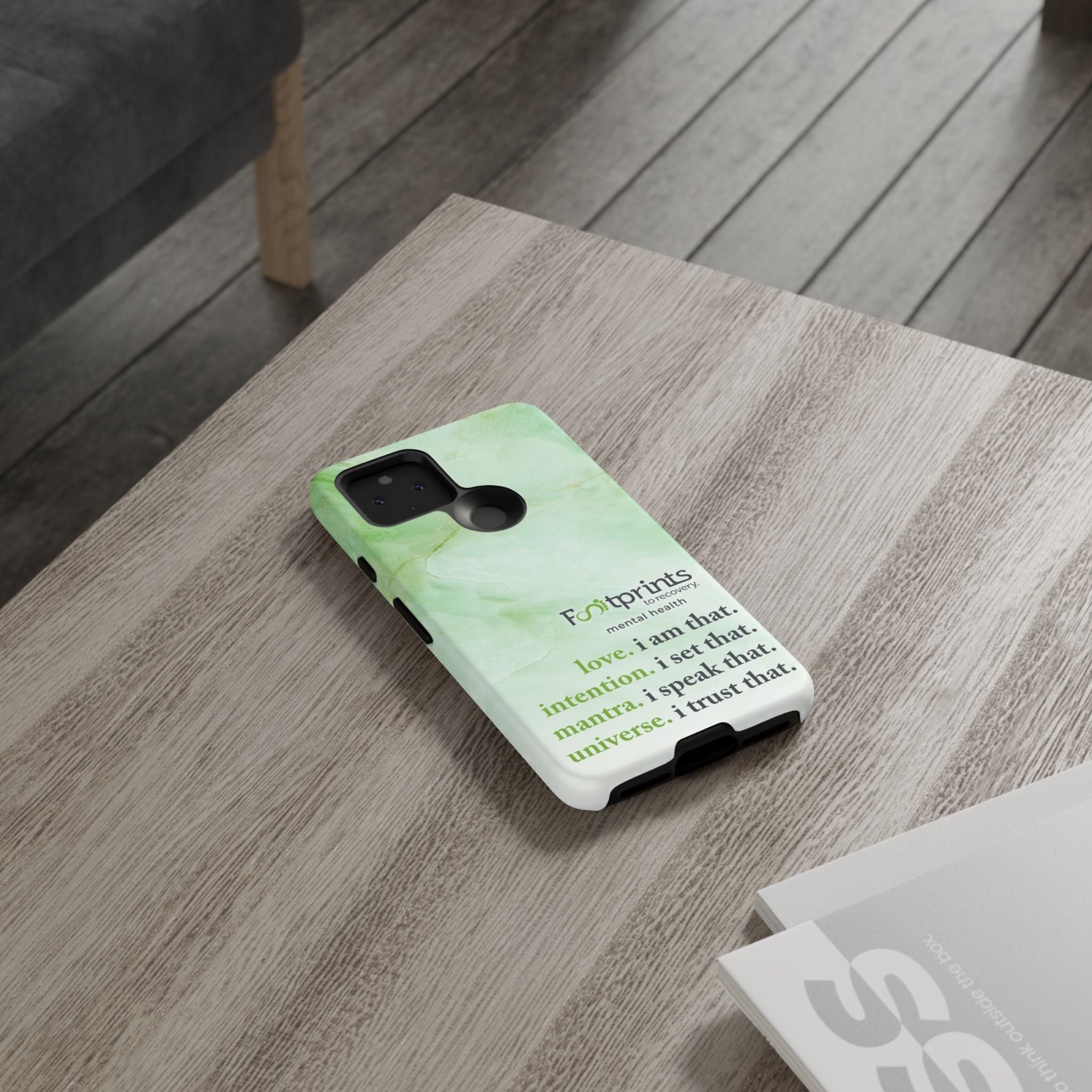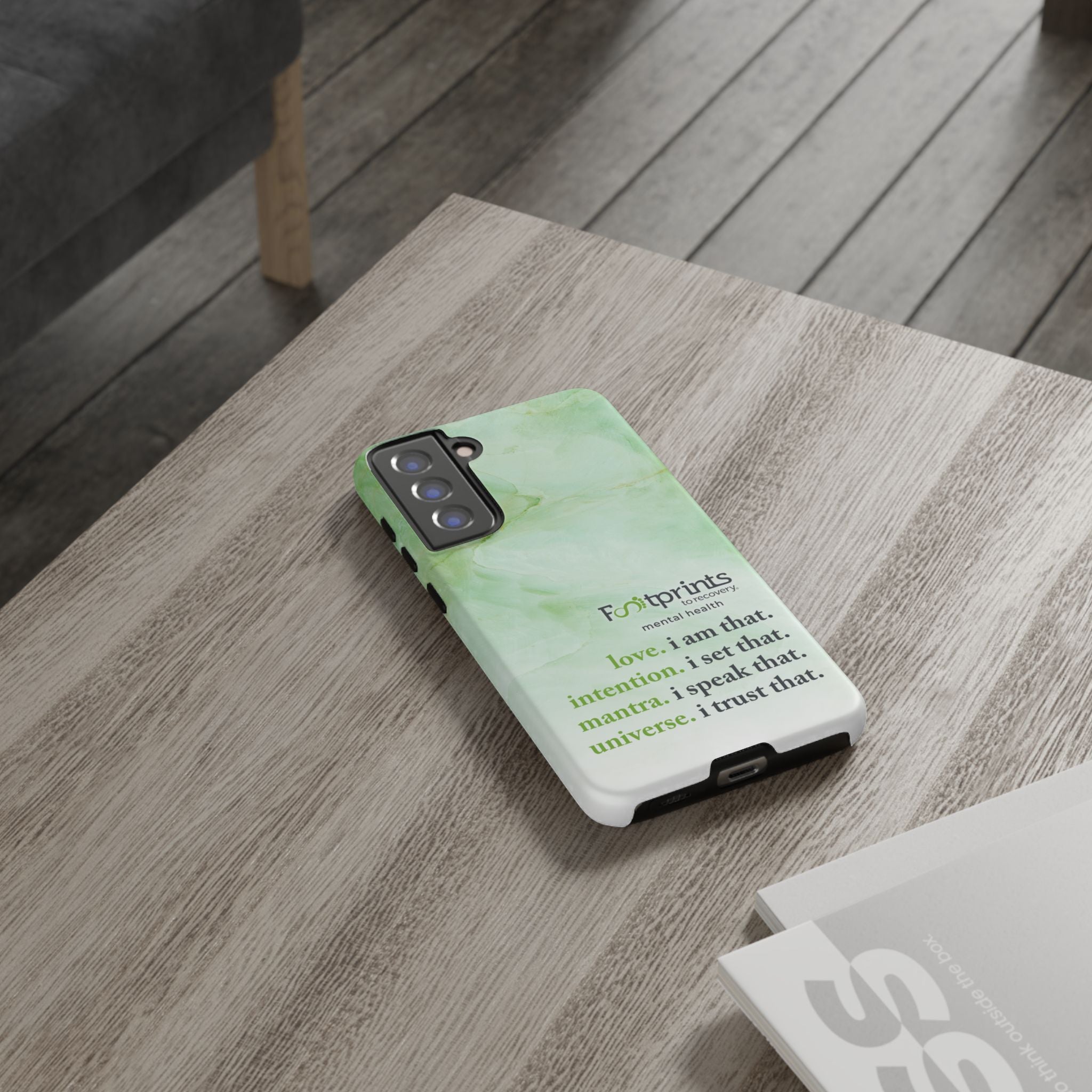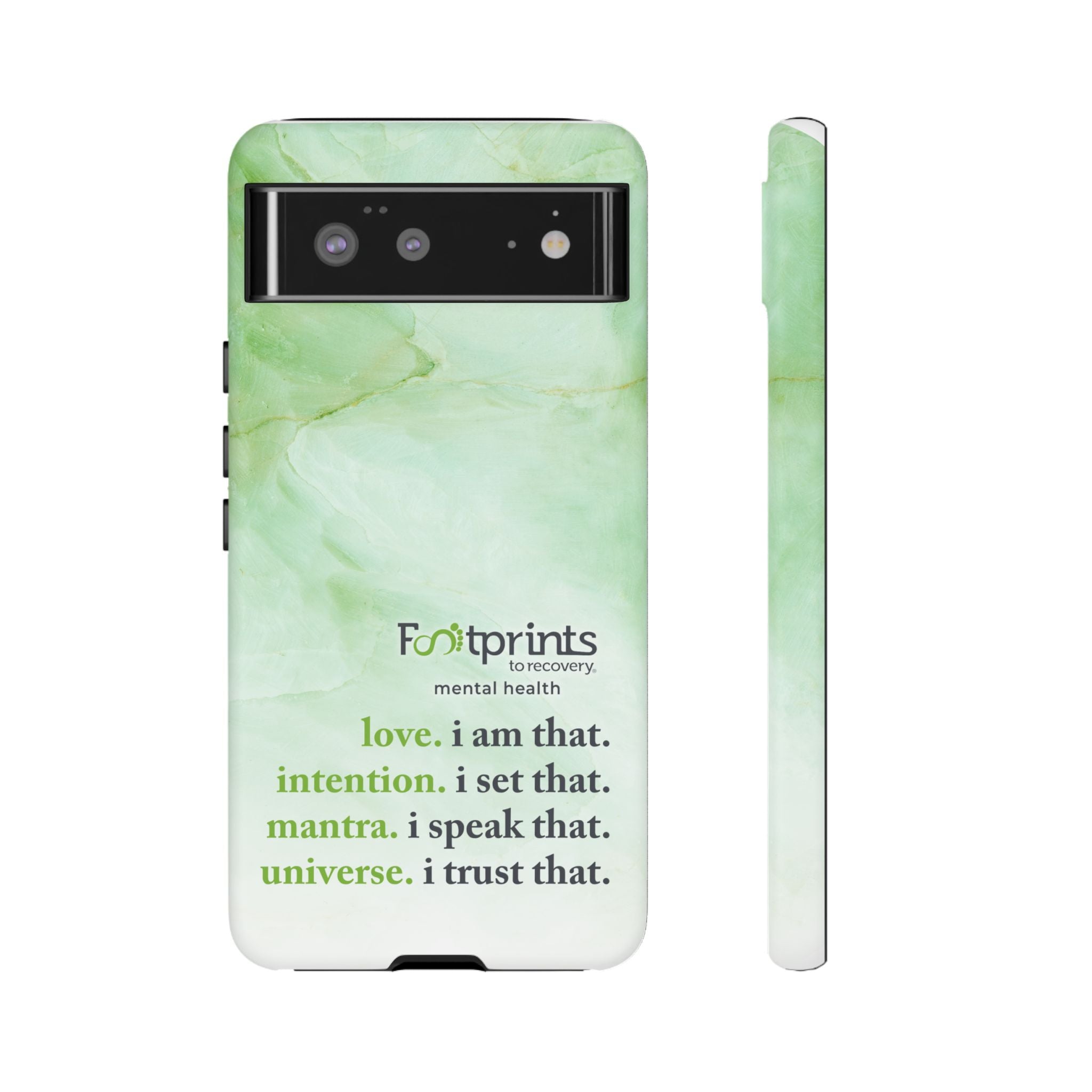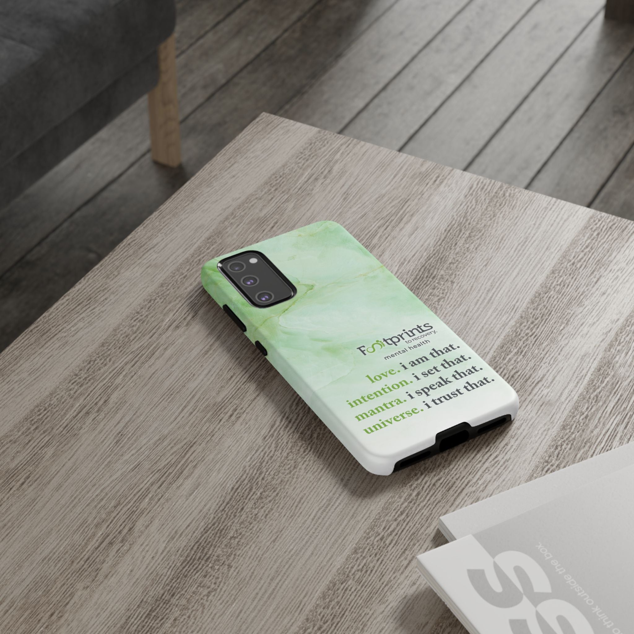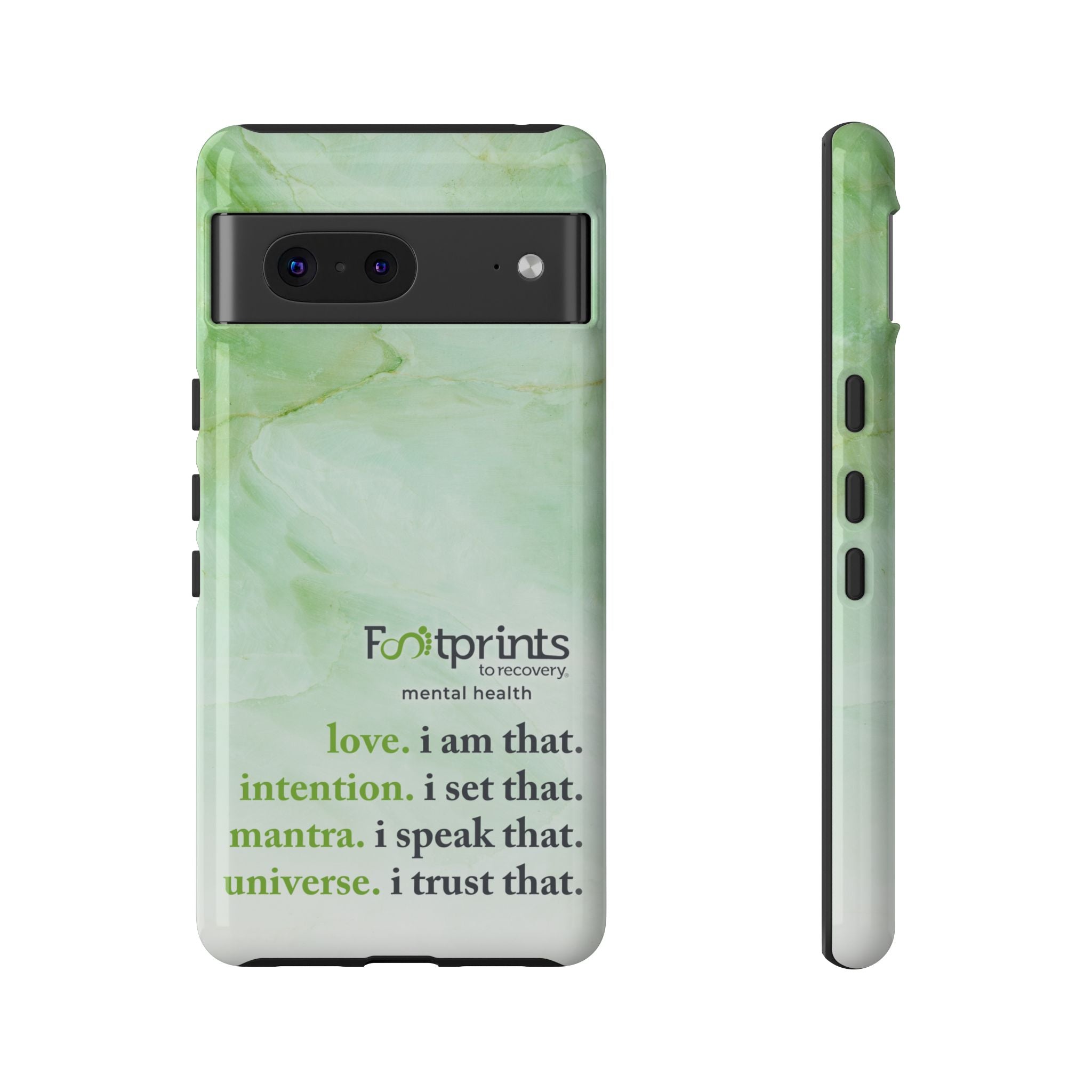 Footprints Mental Health Mantra MagSafe Android Tough Case - the ultimate protection for your phone. Made from high-quality materials, it's durable and stylish and offers easy access to all ports and buttons. With its shock-absorbing technology and anti-slip grip, this case is perfect for anyone who wants to keep their phone safe and secure.