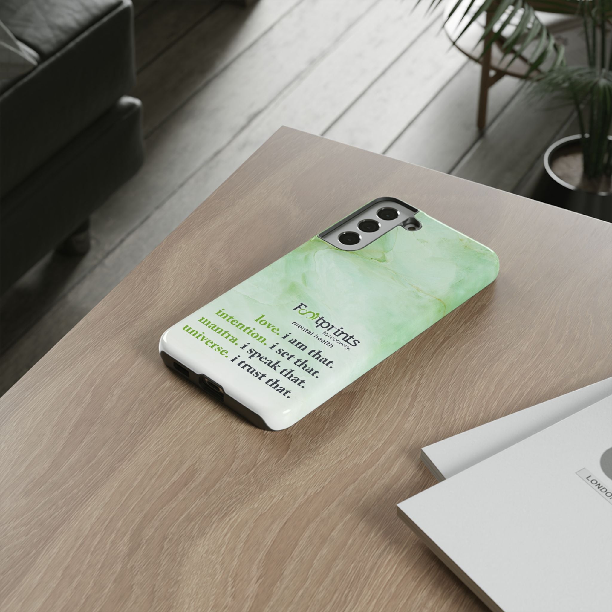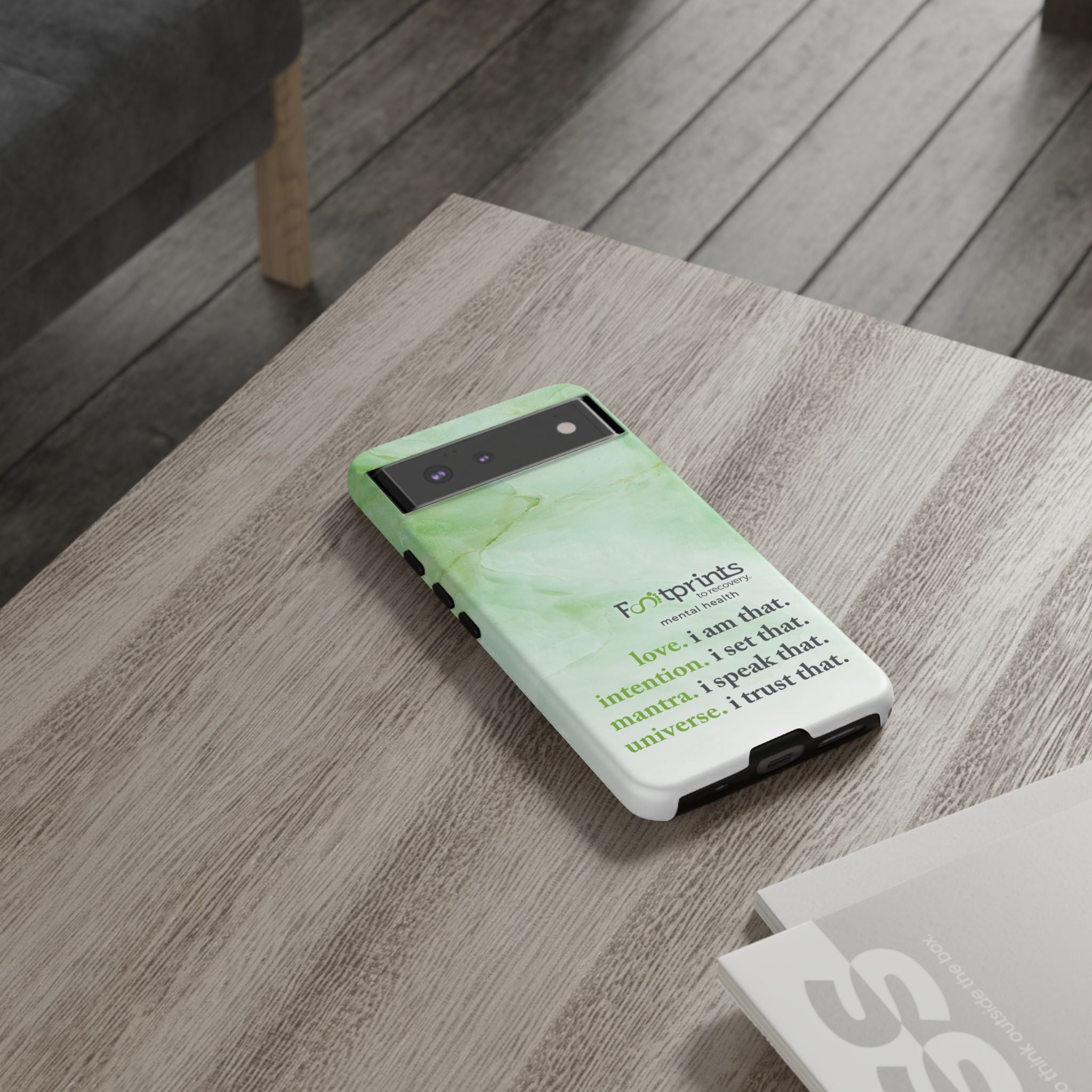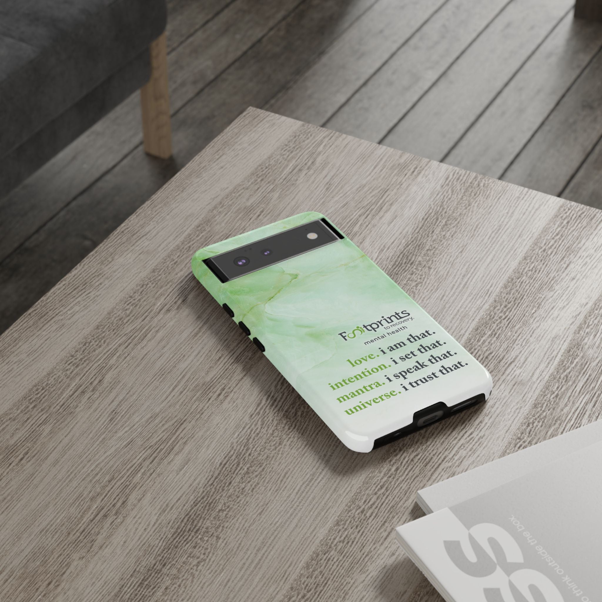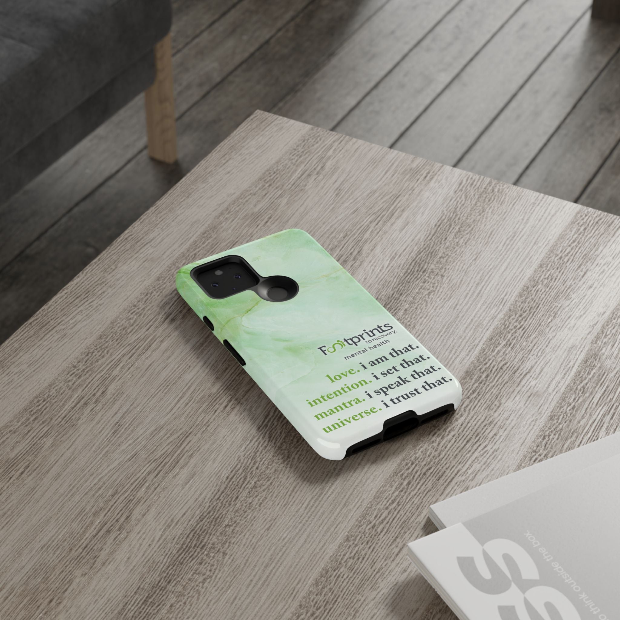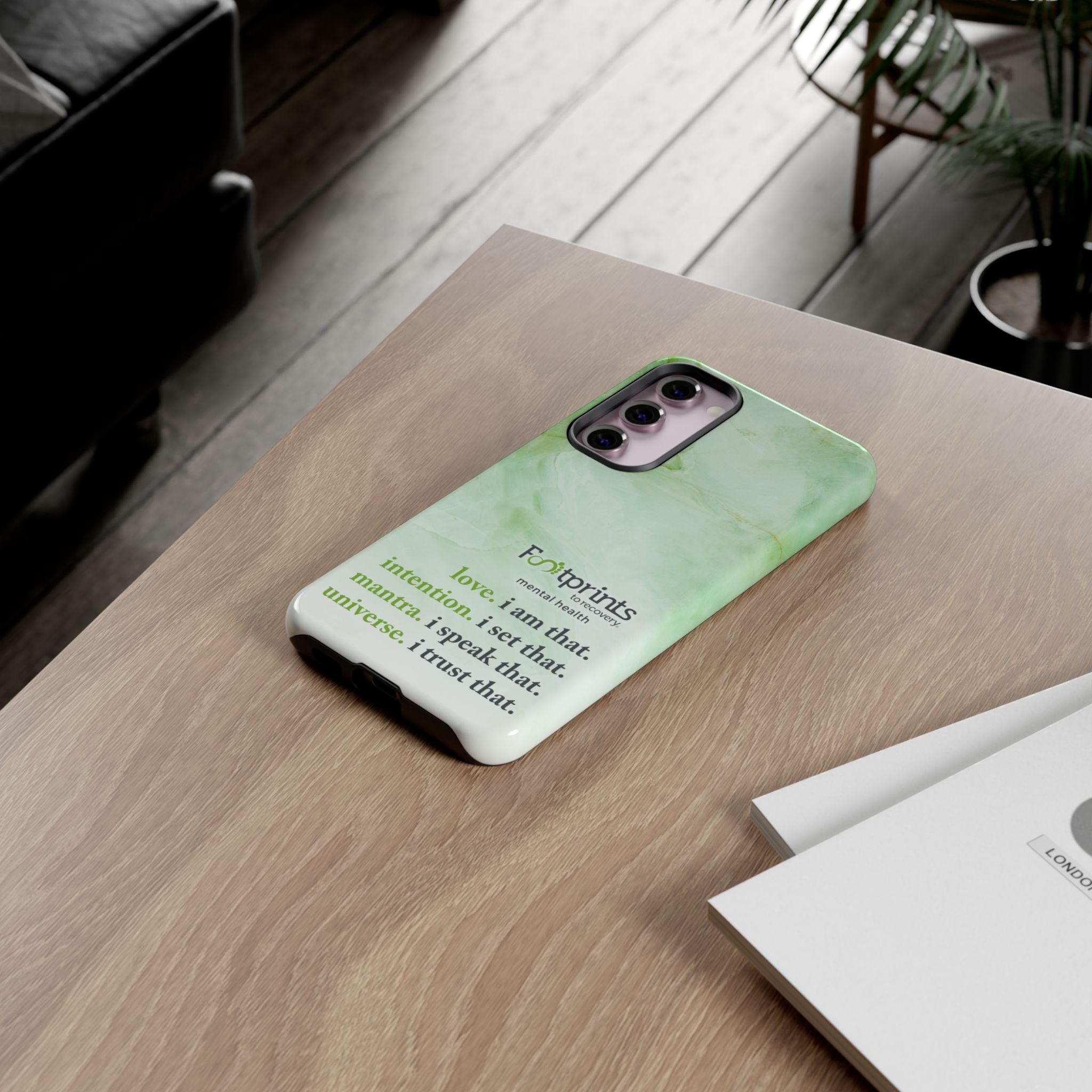 Footprints Mental Health Mantra MagSafe Android Tough Case - the ultimate protection for your phone. Made from high-quality materials, it's durable and stylish and offers easy access to all ports and buttons. With its shock-absorbing technology and anti-slip grip, this case is perfect for anyone who wants to keep their phone safe and secure.