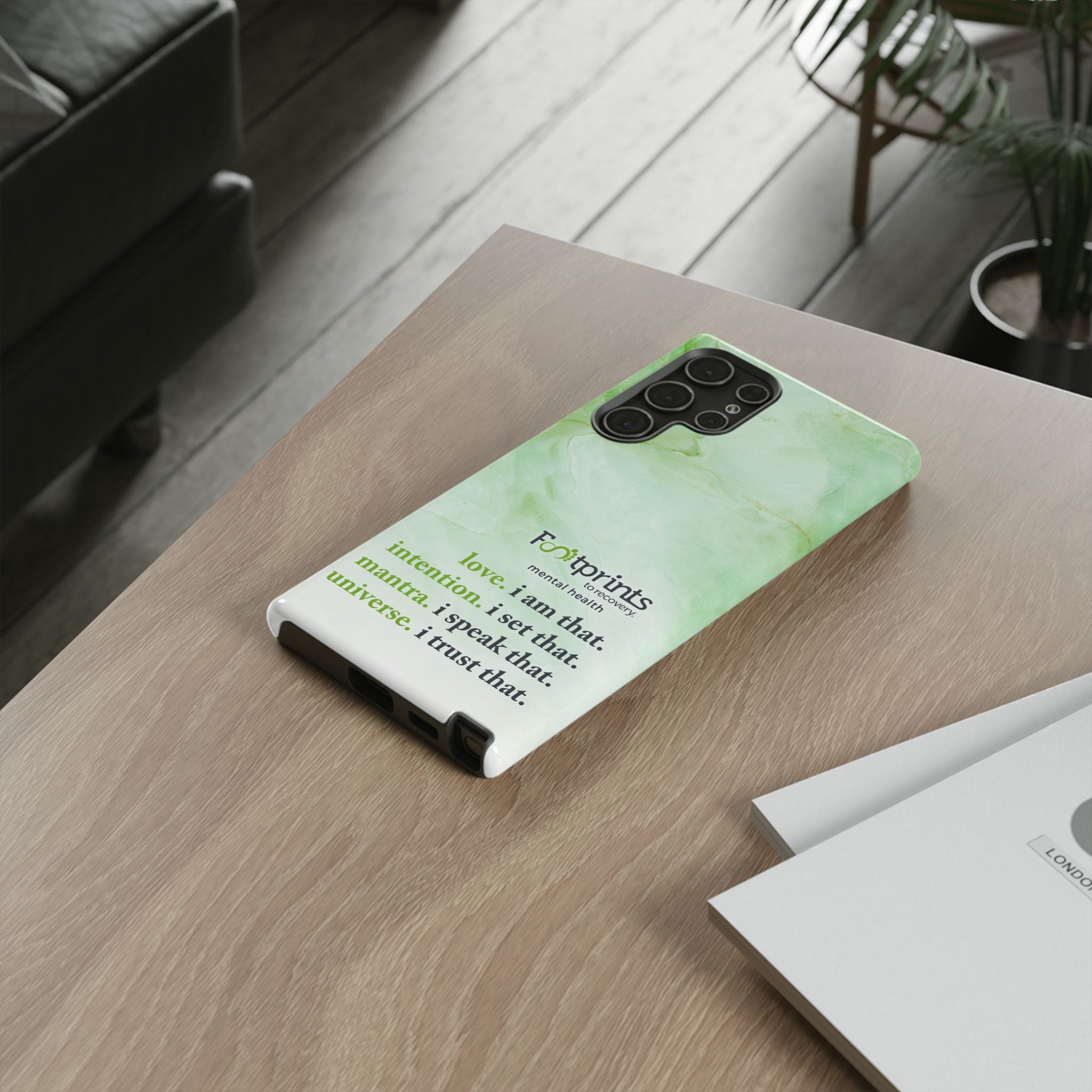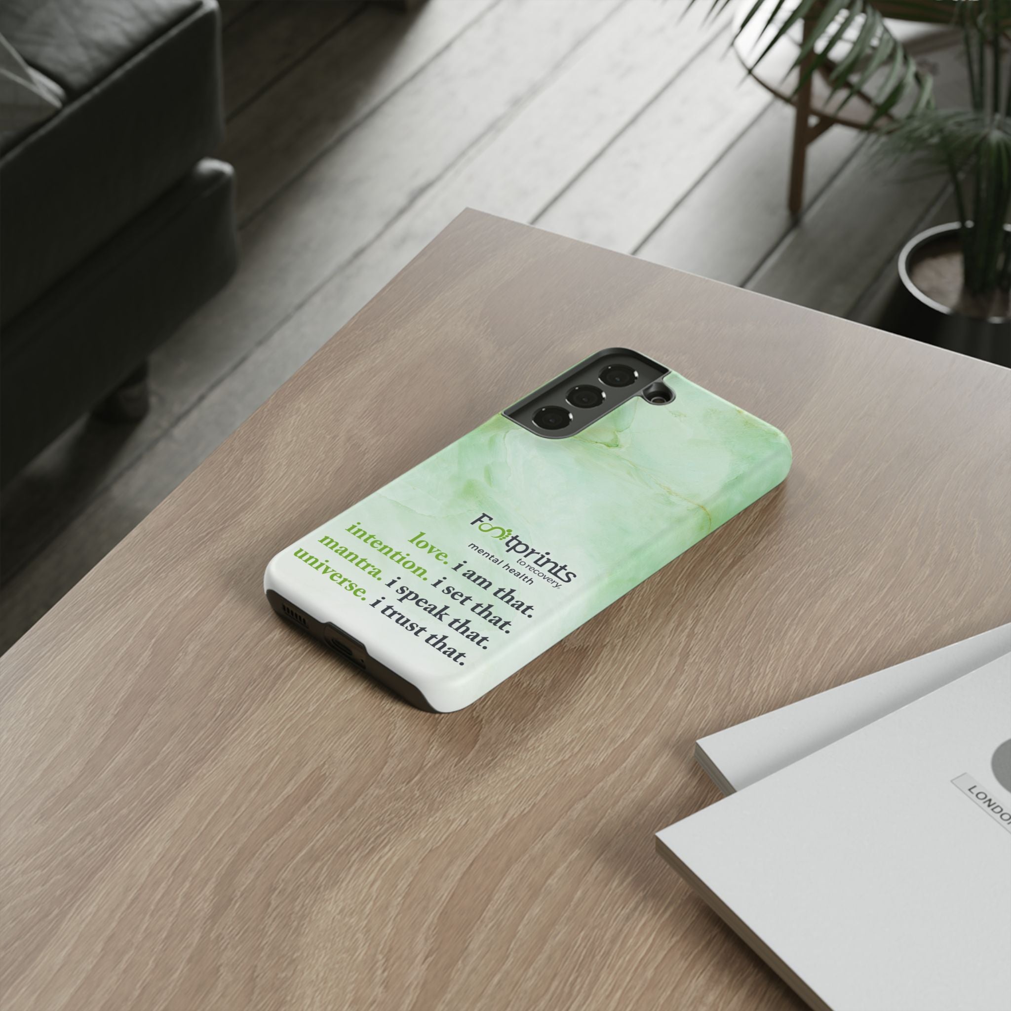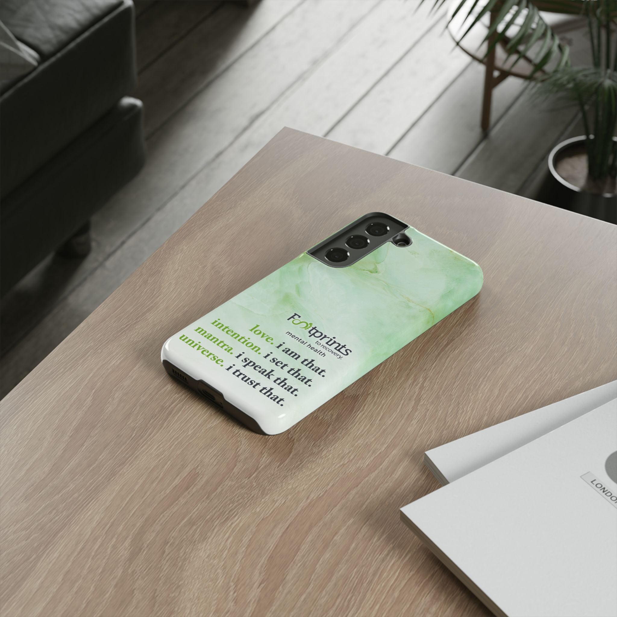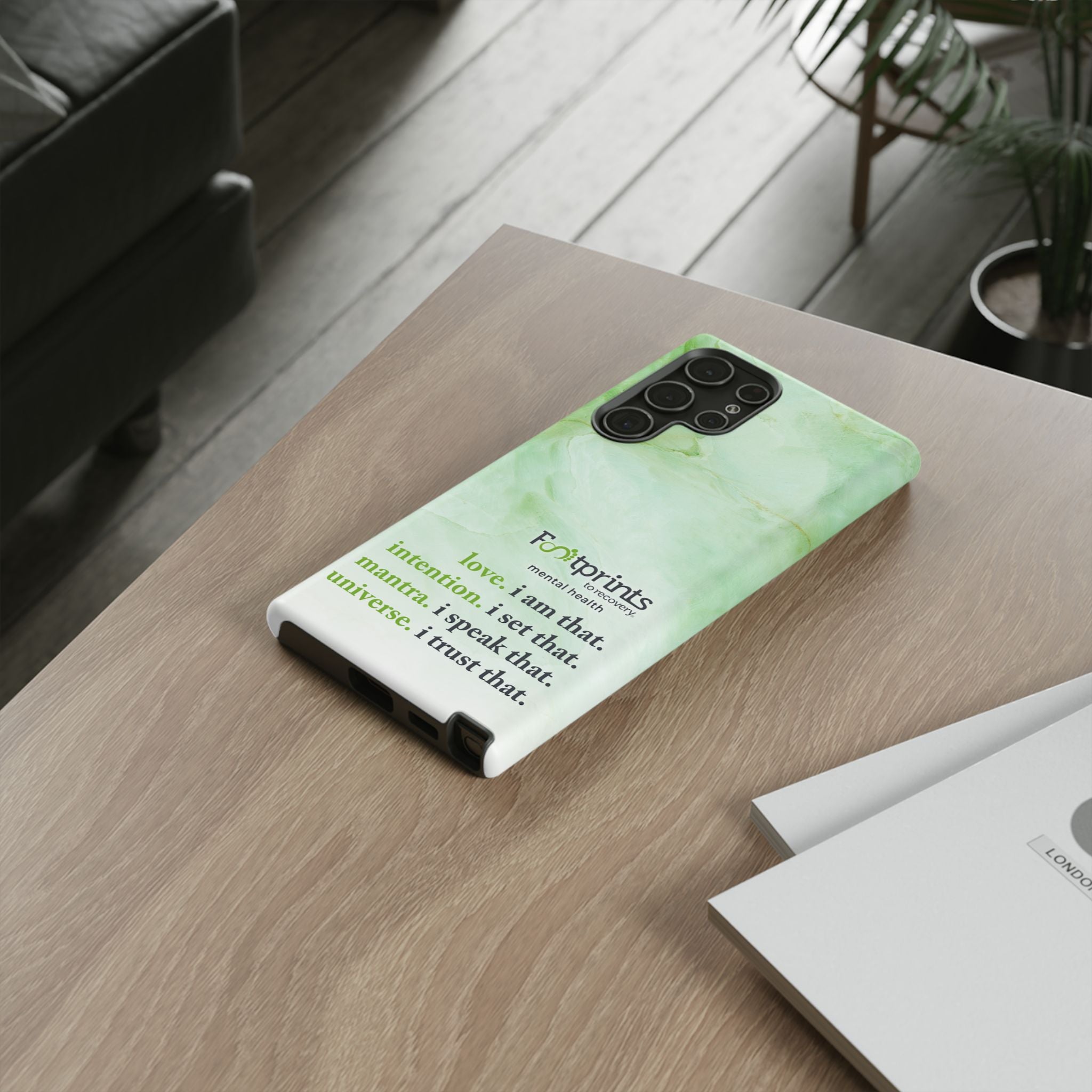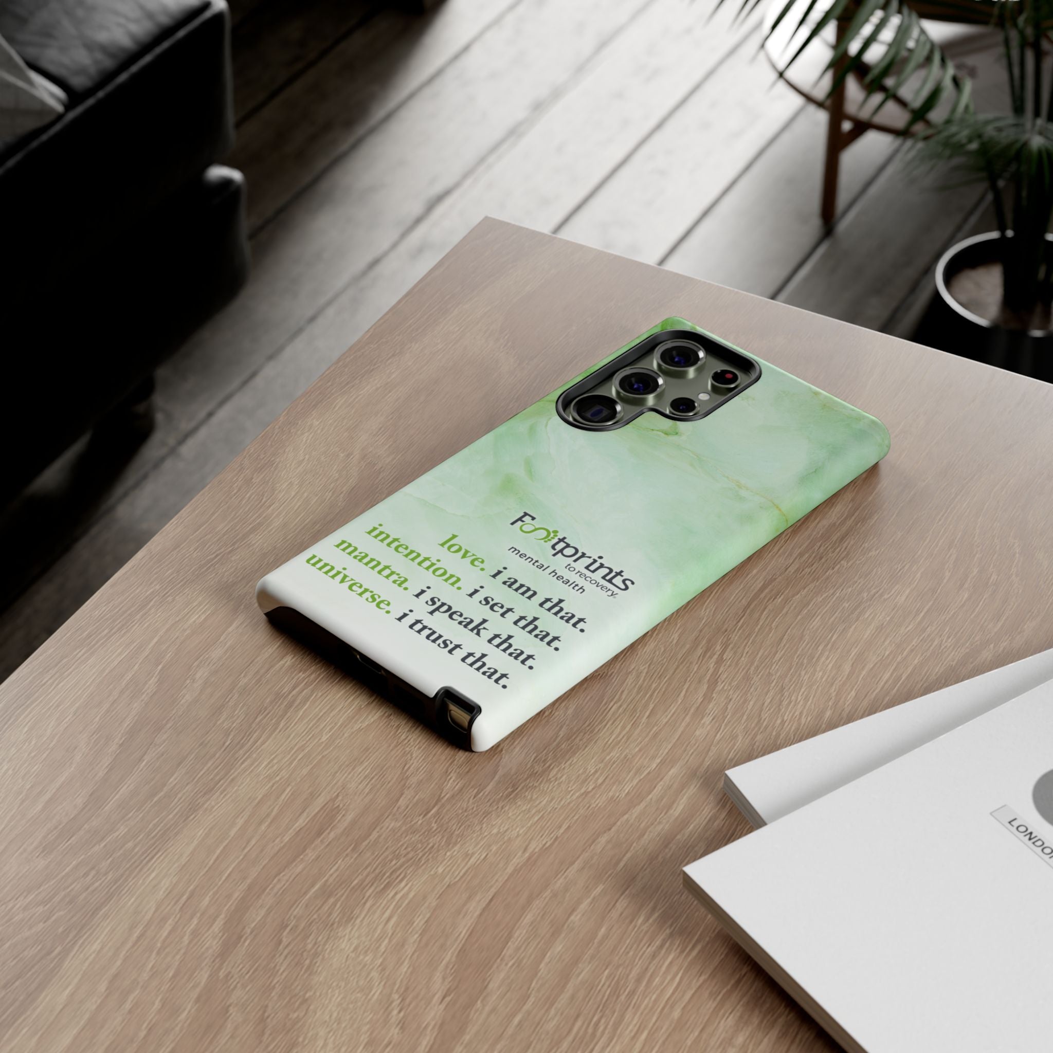Footprints Mental Health Mantra MagSafe Android Tough Case - the ultimate protection for your phone. Made from high-quality materials, it's durable and stylish and offers easy access to all ports and buttons. With its shock-absorbing technology and anti-slip grip, this case is perfect for anyone who wants to keep their phone safe and secure.